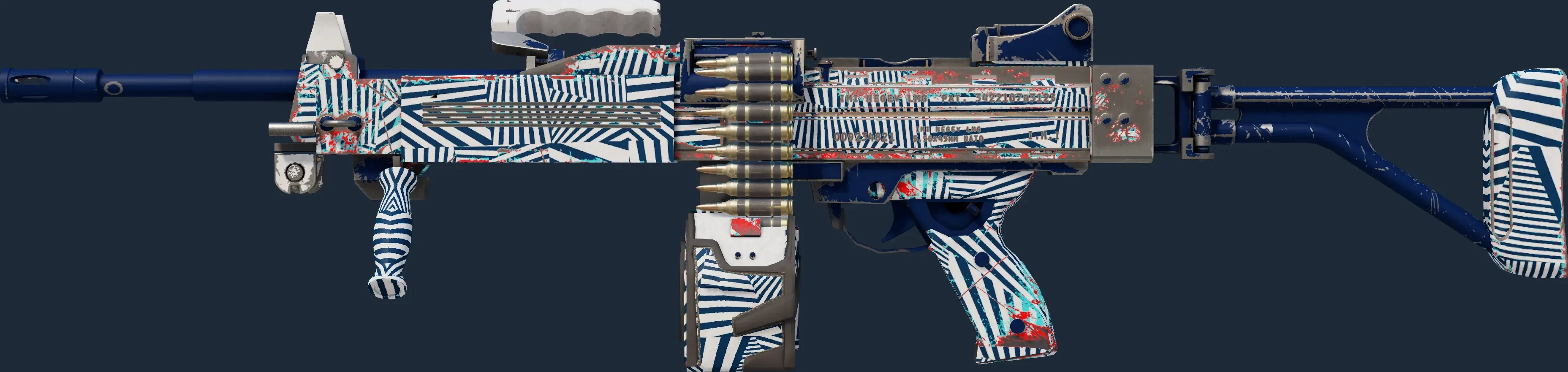 The Negev | Dazzle is a Covert grade skin for the Negev in Counter-Strike 2. It features a Custom Paint Job finish and was designed by SLIMEface.