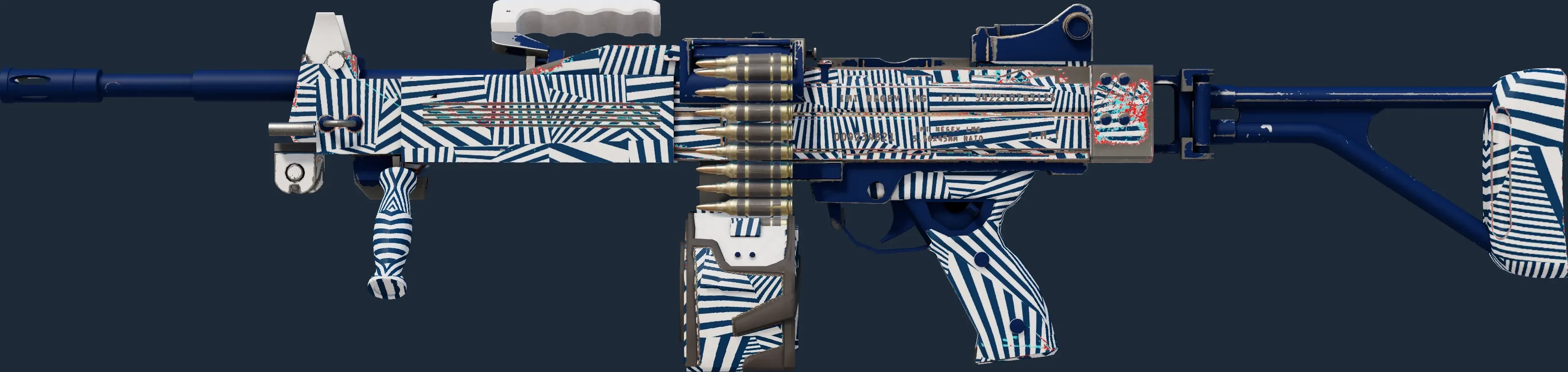 The Negev | Dazzle is a Covert grade skin for the Negev in Counter-Strike 2. It features a Custom Paint Job finish and was designed by SLIMEface.