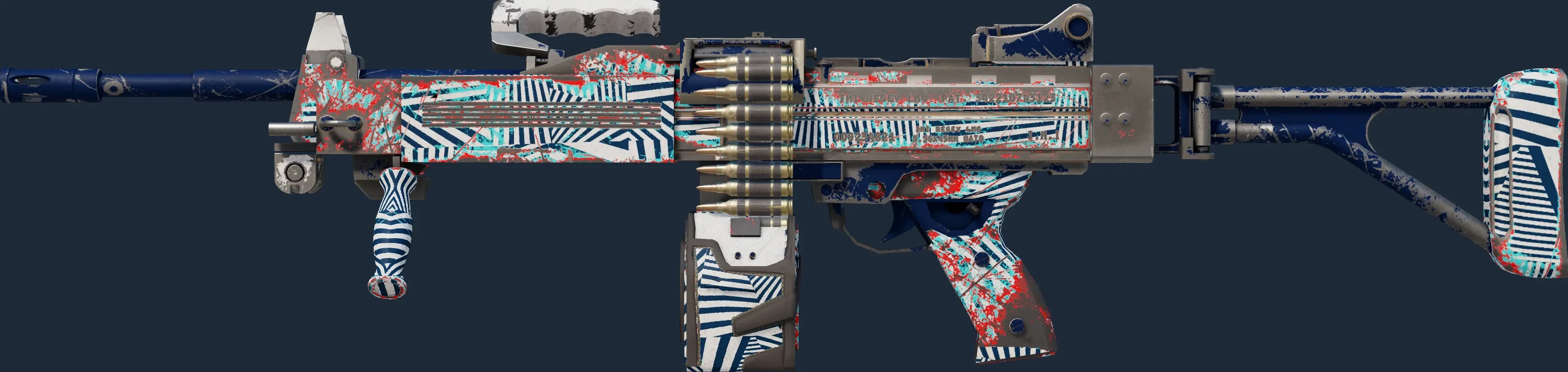 The Negev | Dazzle is a Covert grade skin for the Negev in Counter-Strike 2. It features a Custom Paint Job finish and was designed by SLIMEface.