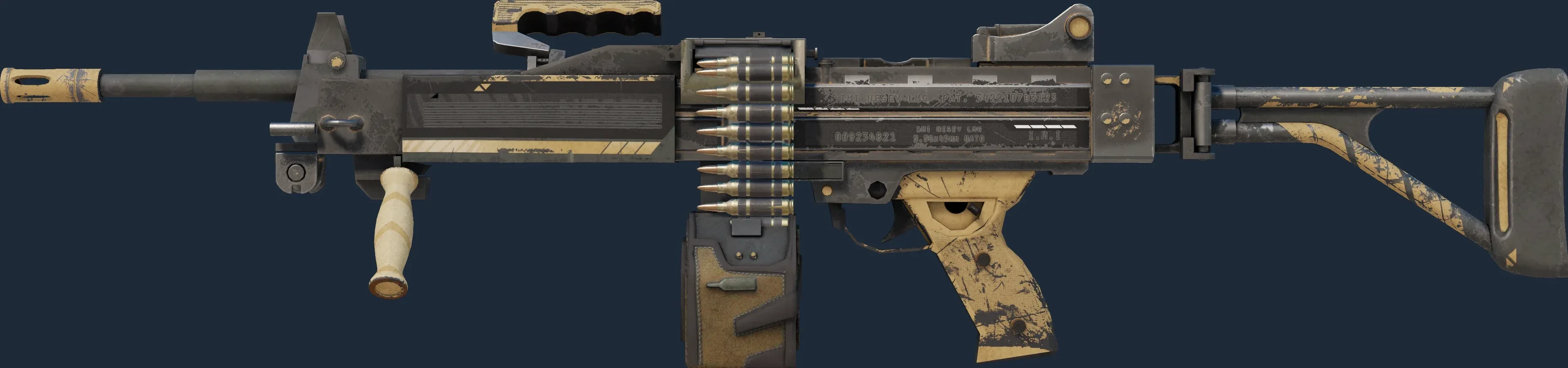 The Negev | Desert Strike is a Covert grade skin for the Negev in Counter-Strike 2. It features a Custom Paint Job finish and was designed by Nextgenz.