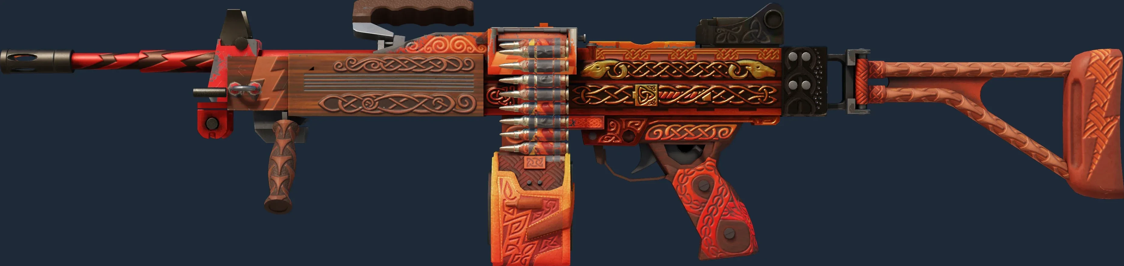 The Negev | Mjolnir is a Covert grade skin for the Negev in Counter-Strike 2. It features a Custom Paint Job finish and was designed by Valve.