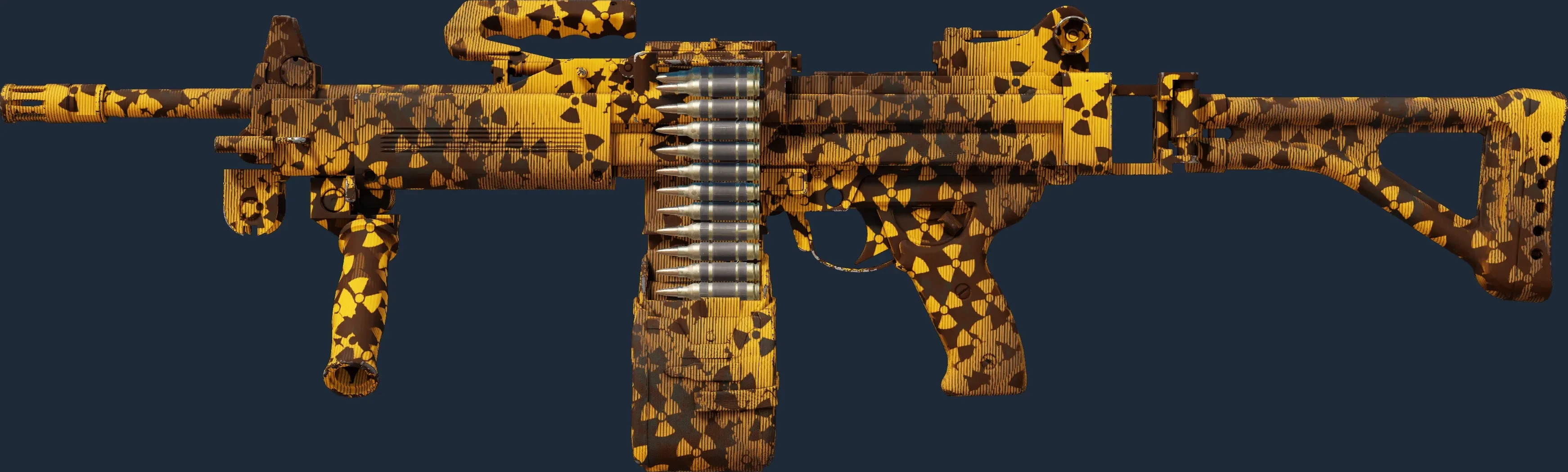 The Negev | Nuclear Waste is one of 49 other Machinegun skins. The rarity of the skin is Industrial Grade, which makes the Nuclear Waste a rather common occurrence in the game.