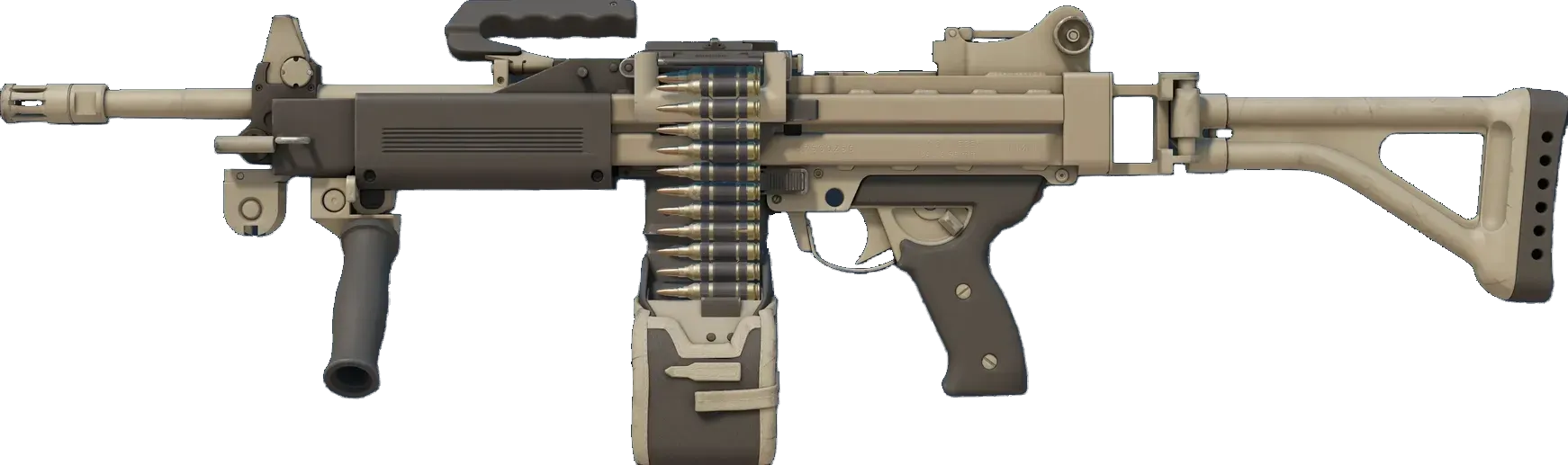 The Negev is a beast that can keep the enemy at bay with its pin-point supressive fire, provided you have the luxury of time to gain control over it. It has been painted a solid tan color. _Restore by force_