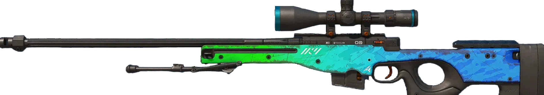 High risk and high reward, the infamous AWP is recognizable by its signature report and one-shot, one-kill policy. It has been custom painted with a vibrant green and blue gradient. _Cold to the touch_