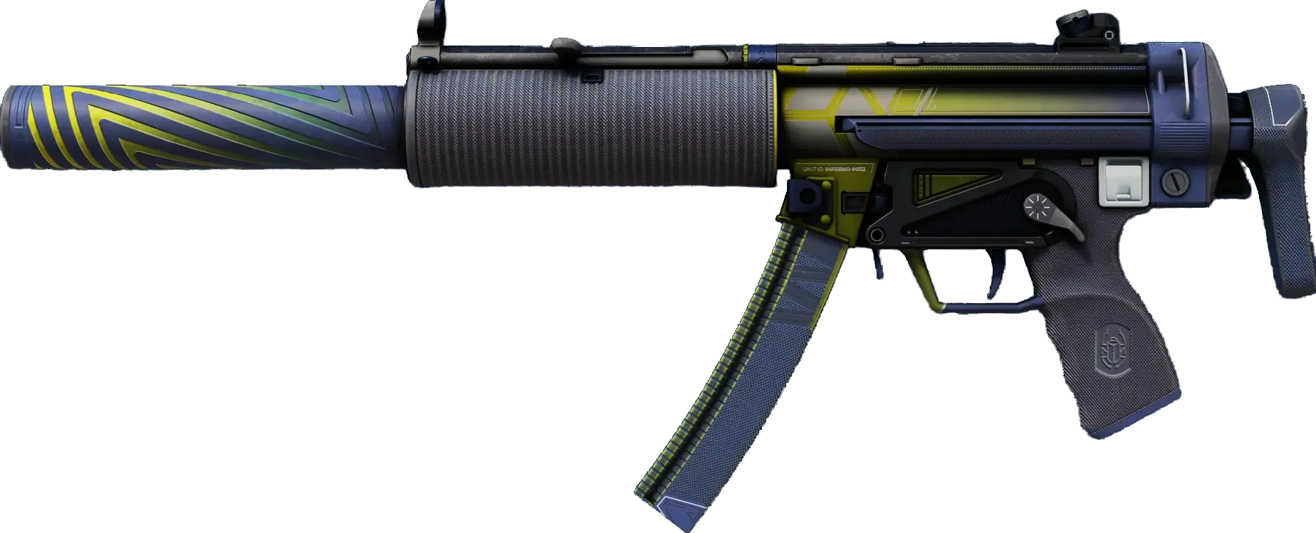 Often imitated but never equaled, the iconic MP5 is perhaps the most versatile and popular SMG in the world. This SD variant features an integrated silencer, making an already formidable weapon whisper-quiet. Its blue and yellow custom paint job pays homage to Counter-Strike: Condition Zero. _"RPG from three o'clock! Evade!"_