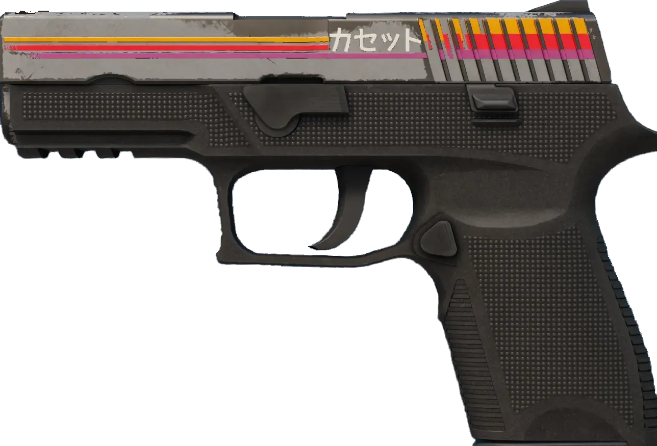 A low-recoil firearm with a high rate of fire, the P250 is a relatively inexpensive choice against armored opponents. A custom paint job inspired by video cassette packaging from the 1990s has been applied. _Check the tape_