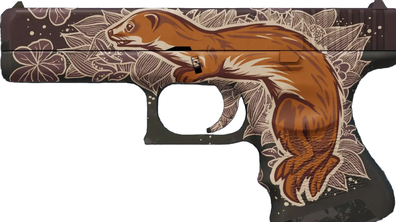 The Glock 18 is a serviceable first-round pistol that works best against unarmored opponents and is capable of firing three-round bursts. It has been given a hydrographic of Bobby the Mischievous Weasel. Don't mess with Bobby. _Just because he's cute, doesn't mean he doesn't bite_