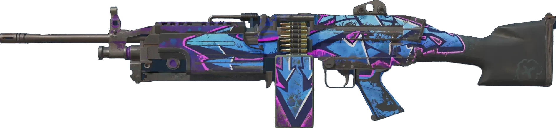 A strong open-area LMG, the M249 is the perfect choice for players willing to trade a slow fire rate for increased accuracy and a high ammo capacity. It has been tagged with blue and pink arrows pointing in every direction. _A different kind of spray pattern_