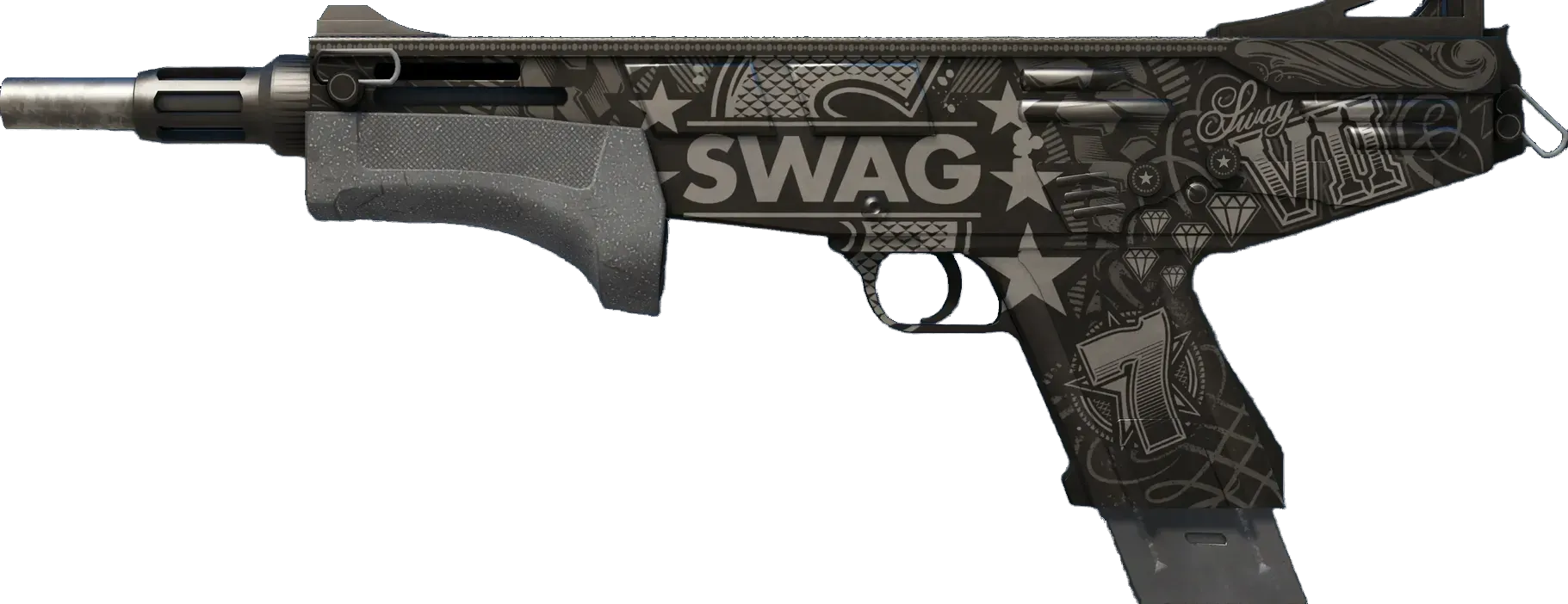 The CT-exclusive Mag-7 delivers a devastating amount of damage at close range. Its rapid magazine-style reloads make it a great tactical choice. It has been covered in monochromatic silver and black designs. _You either have it or you don't_