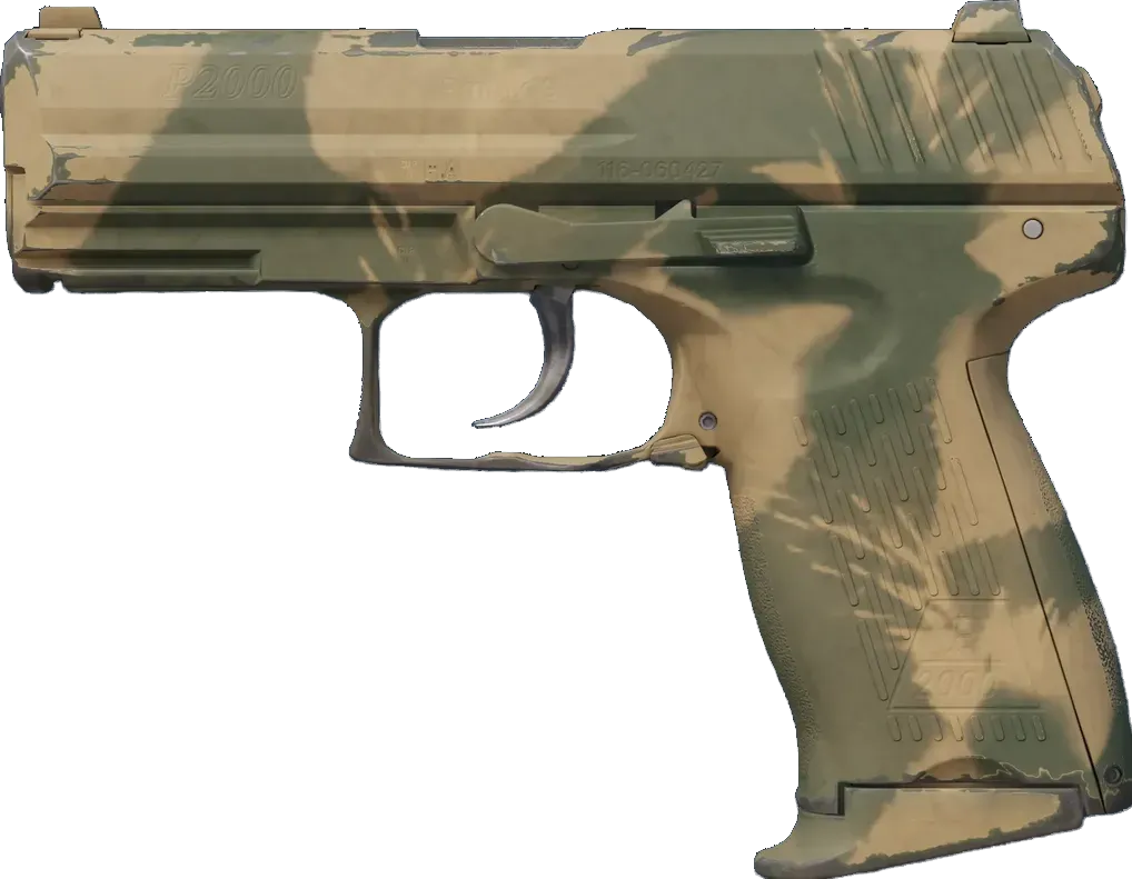 Accurate and controllable, the German-made P2000 is a serviceable first-round pistol that works best against unarmored opponents. It has been spray-painted using leaves as stencils.