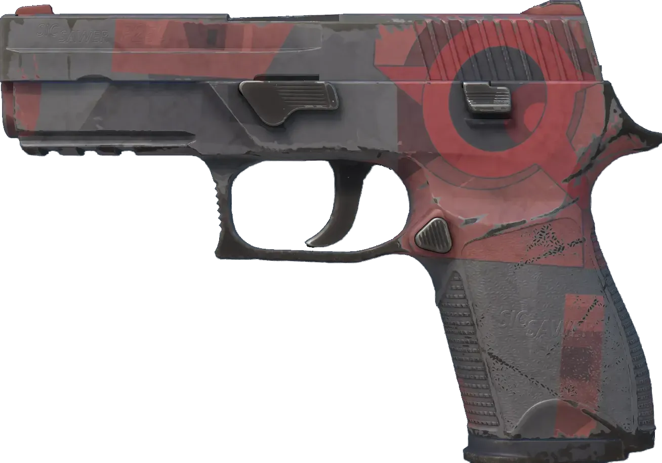 A low-recoil firearm with a high rate of fire, the P250 is a relatively inexpensive choice against armored opponents. It has been painted with a maroon and grey pattern. _Form AND function_