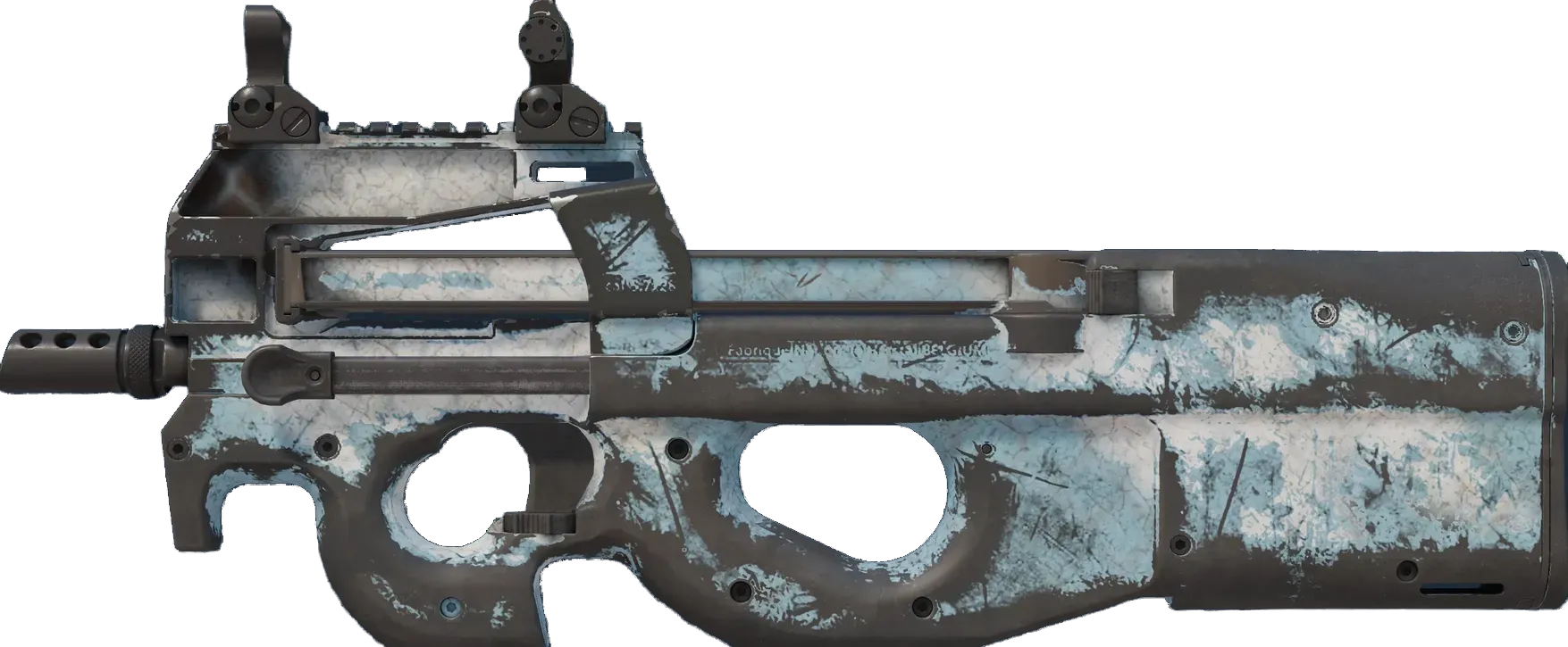Float-verdien til P90 | Glacier Mesh varierer fra 0.00 til 1.00, noe som gjør skinnet tilgjengelig i alle eksteriører. For hvert eksteriør finnes det også en StatTrak-versjon for Glacier Mesh.