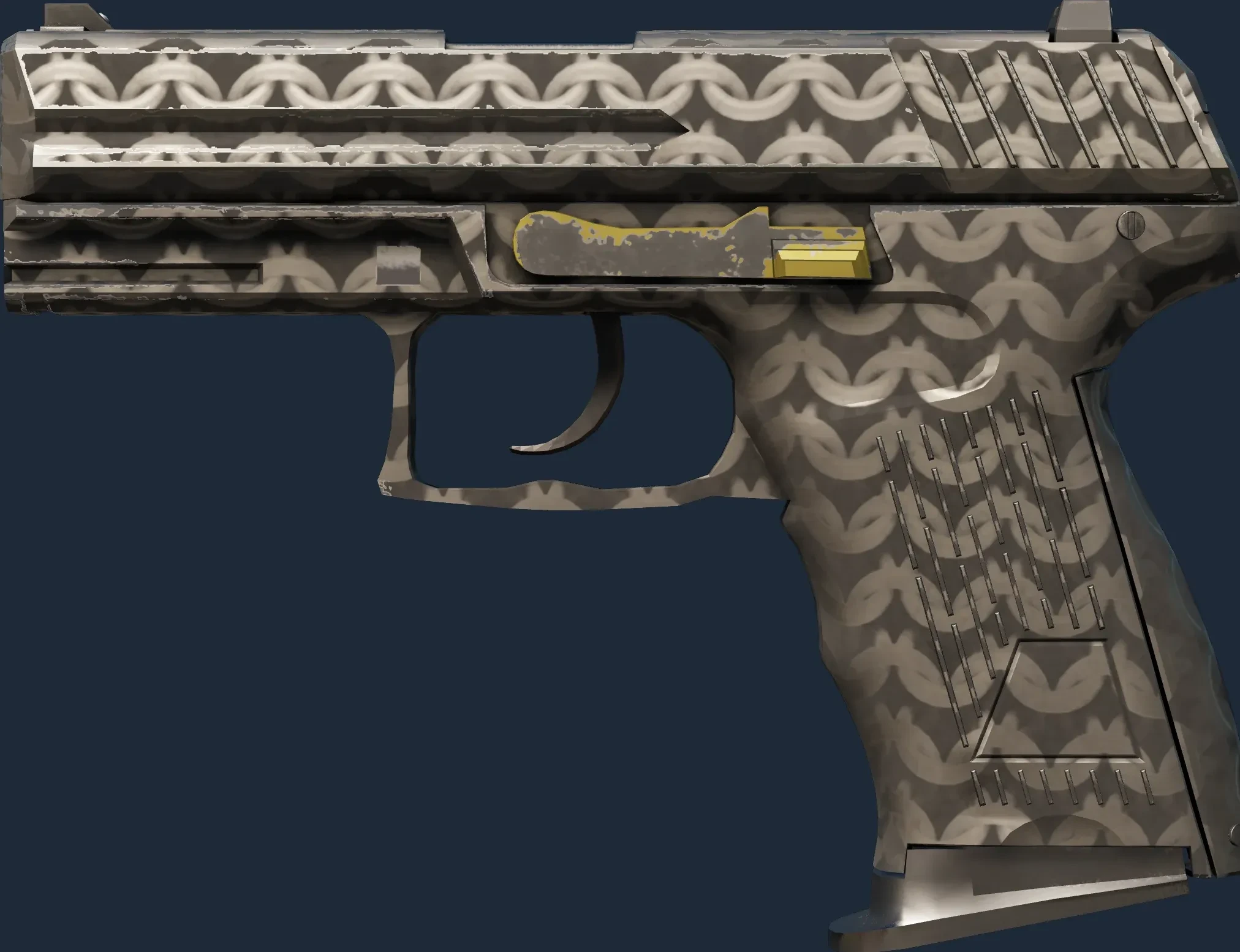 The P2000 | Chainmail is a Covert grade skin for the P2000 in Counter-Strike 2. It features a Custom Paint Job finish and was designed by Valve.