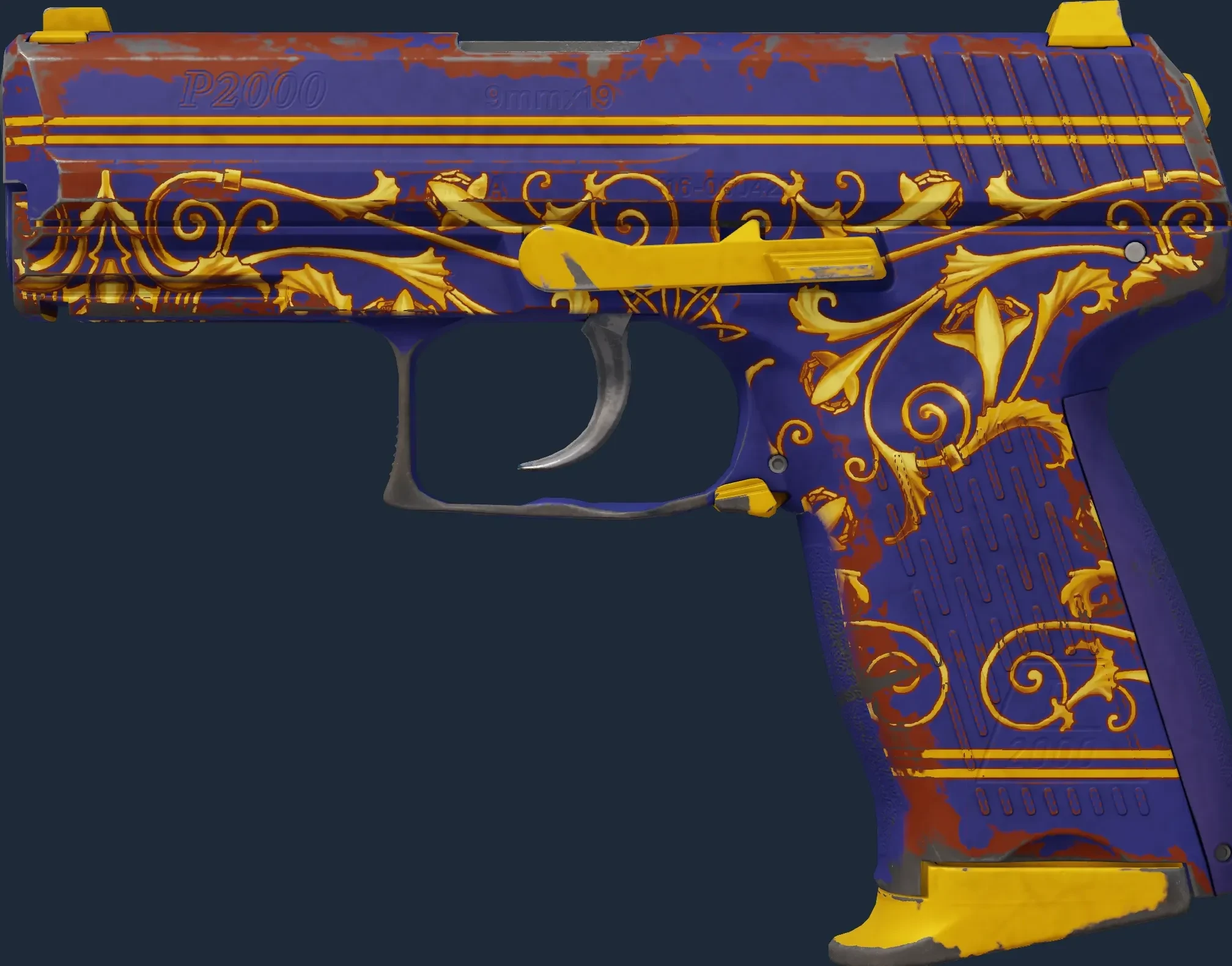 The P2000 | Royal Baroque is a Covert grade skin for the P2000 in Counter-Strike 2. It features a Custom Paint Job finish and was designed by Valve.