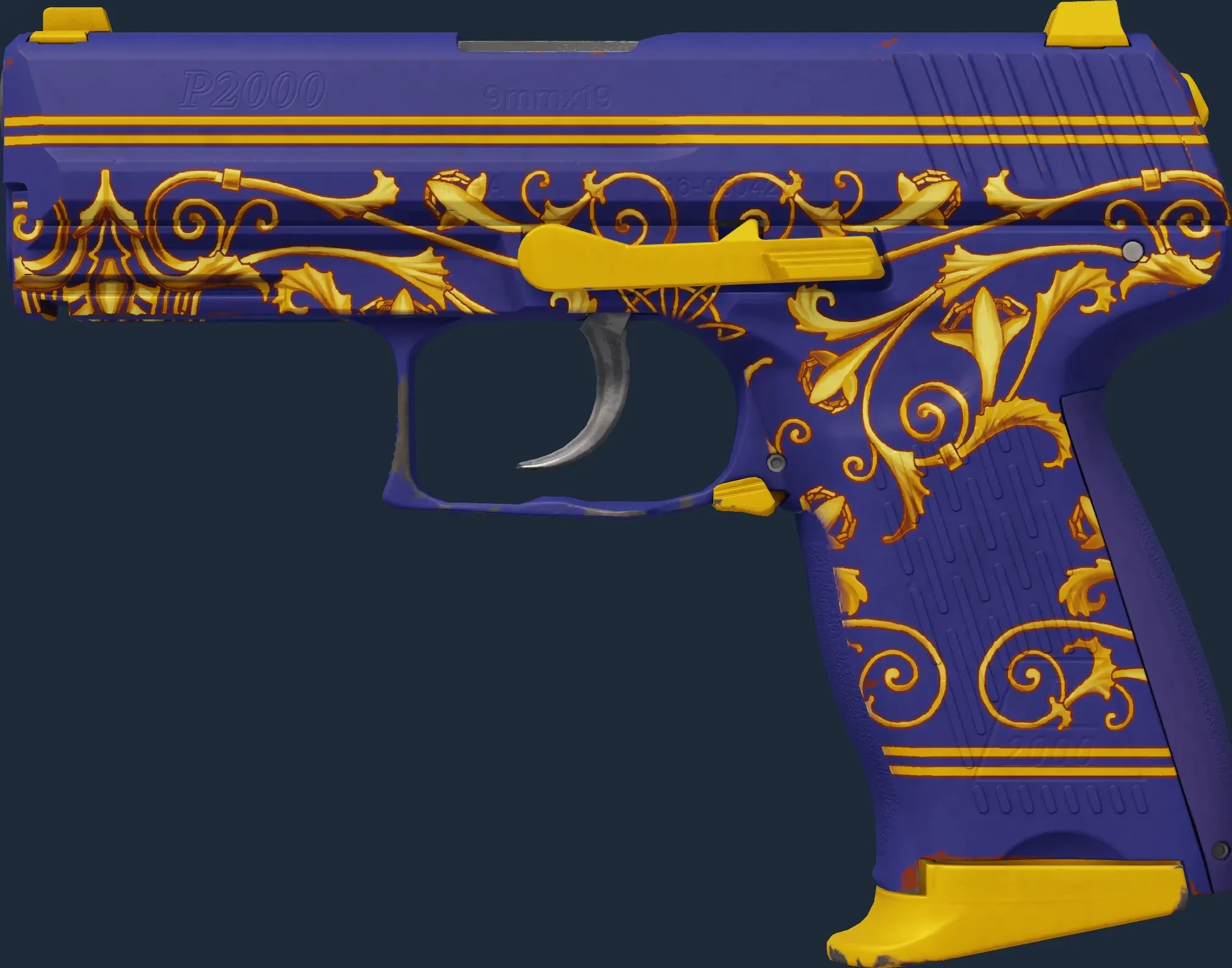 The P2000 | Royal Baroque is a Covert grade skin for the P2000 in Counter-Strike 2. It features a Custom Paint Job finish and was designed by Valve.