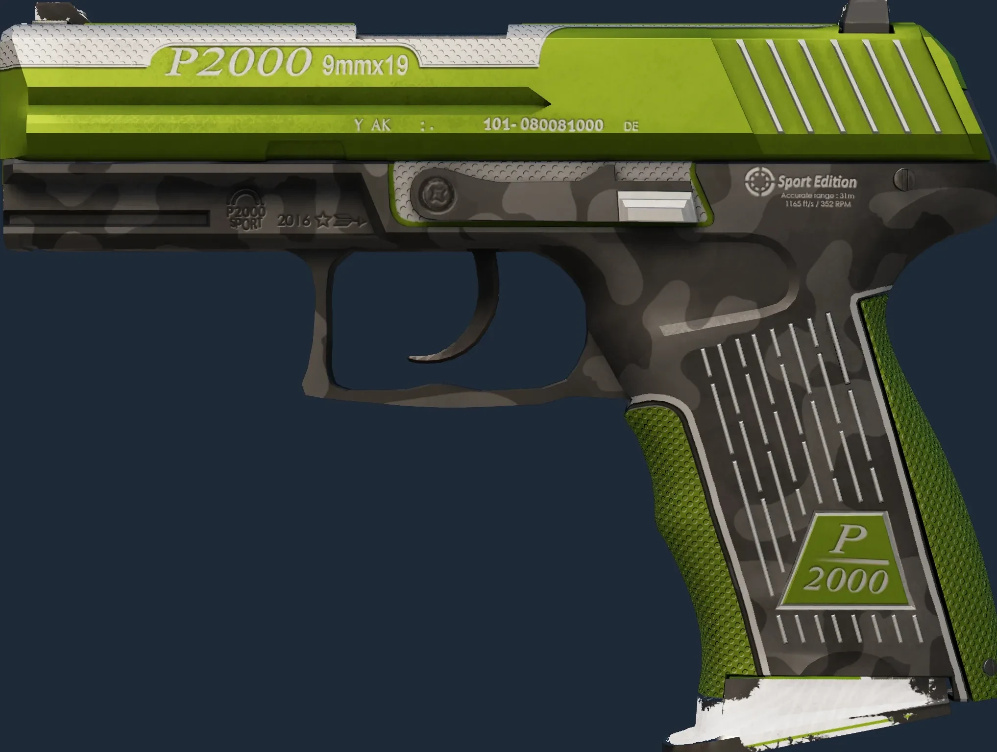The P2000 | Turf is a Covert grade skin for the P2000 in Counter-Strike 2. It features a Custom Paint Job finish and was designed by Ç!イ!乙3η-メ.