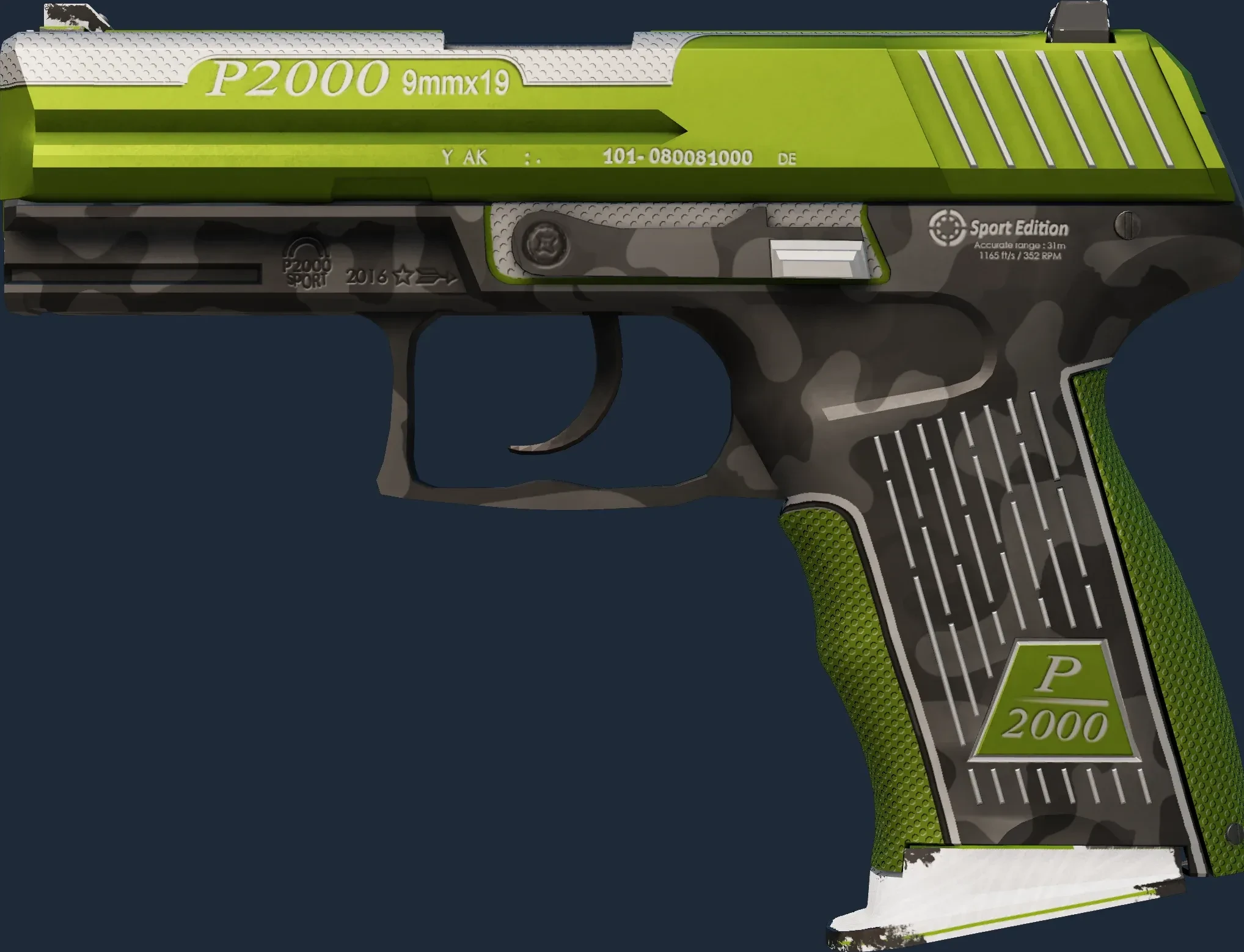 The P2000 | Turf is a Covert grade skin for the P2000 in Counter-Strike 2. It features a Custom Paint Job finish and was designed by Ç!イ!乙3η-メ.