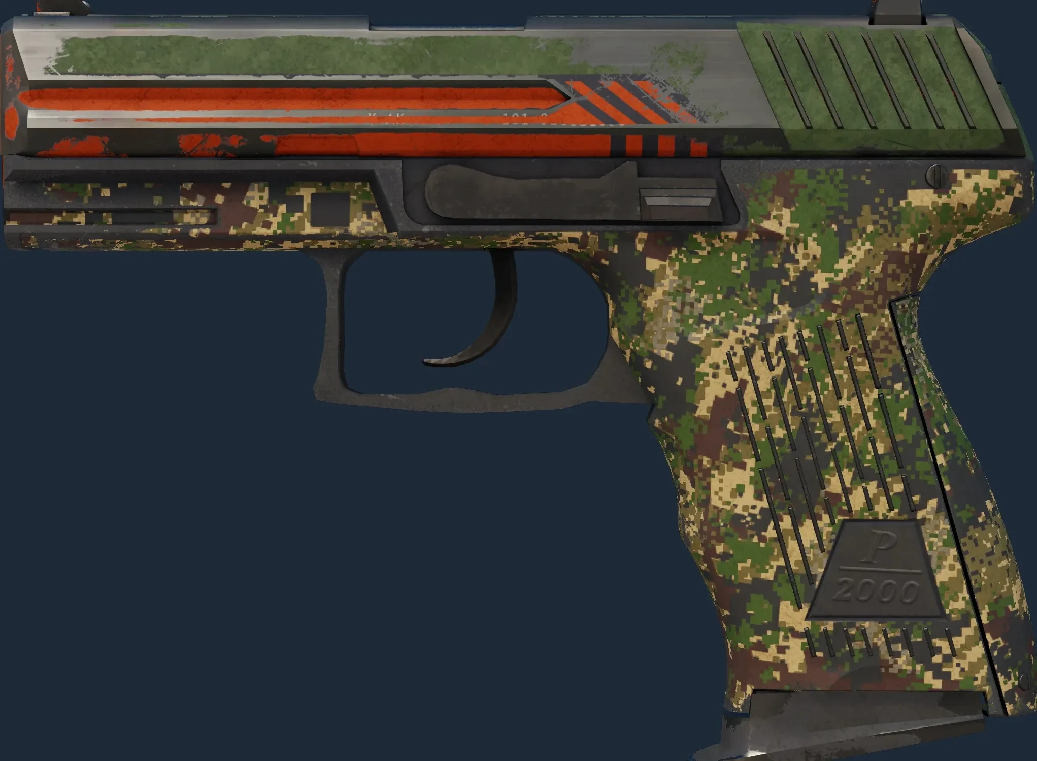 The P2000 | Woodsman is a Covert grade skin for the P2000 in Counter-Strike 2. It features a Custom Paint Job finish and was designed by Marduk.
