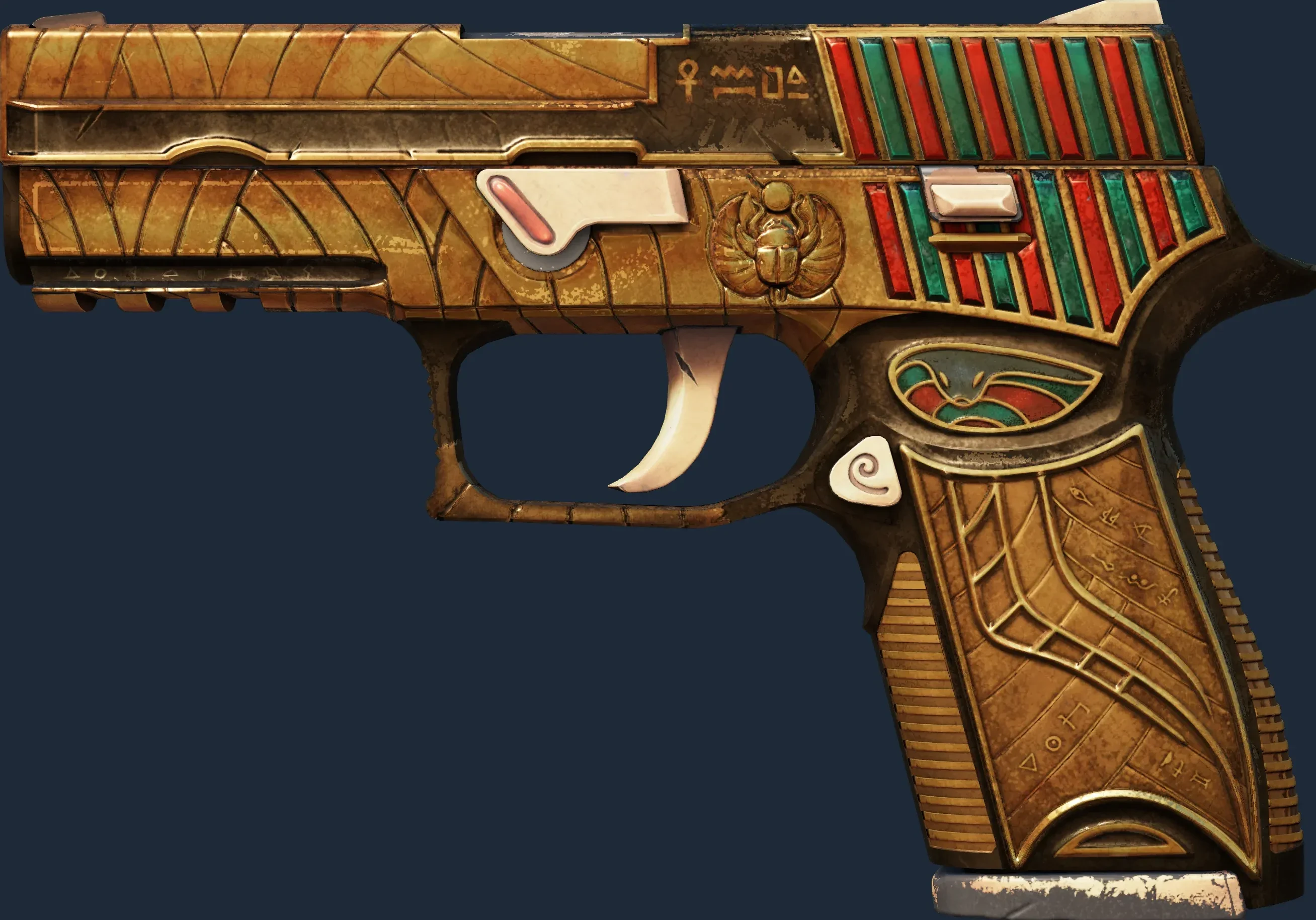 The P250 | Apeps Curse is a Covert grade skin for the P250 in Counter-Strike 2. It features a Custom Paint Job finish and was designed by apel8.