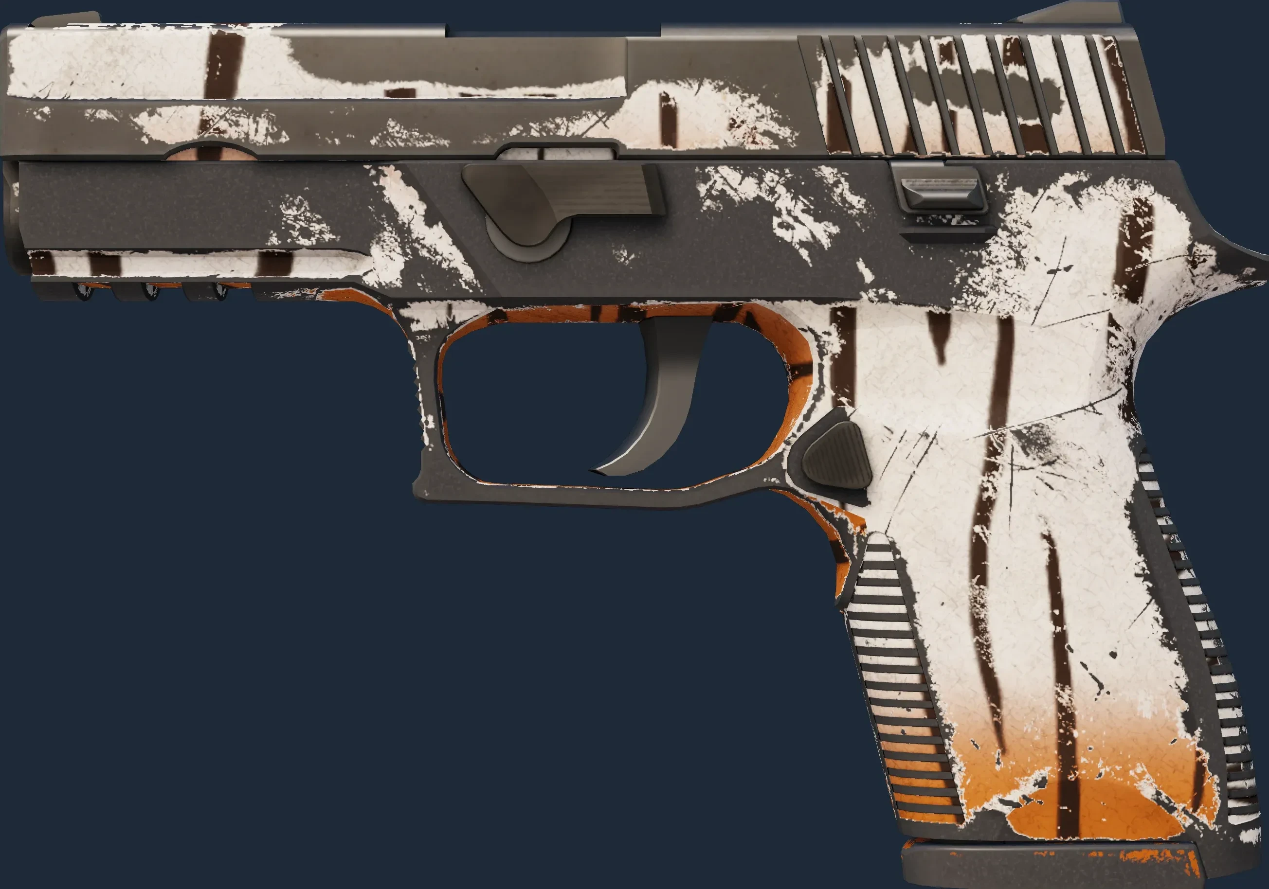 The P250 | Bengal Tiger is a Covert grade skin for the P250 in Counter-Strike 2. It features a Custom Paint Job finish and was designed by Valve.