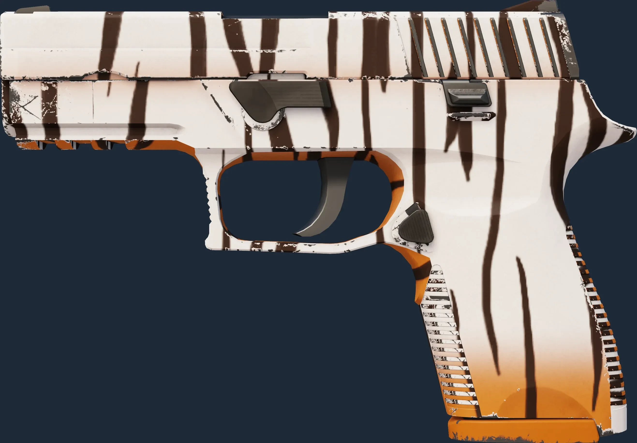 The P250 | Bengal Tiger is a Covert grade skin for the P250 in Counter-Strike 2. It features a Custom Paint Job finish and was designed by Valve.
