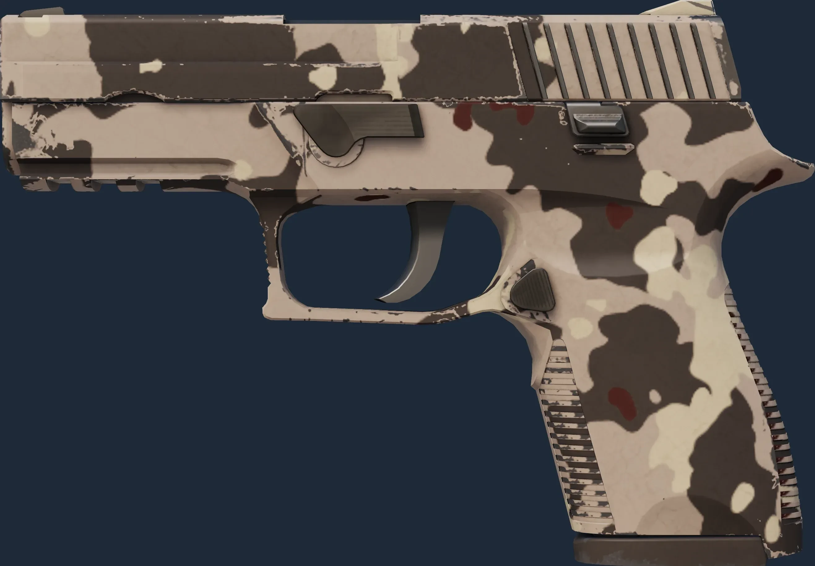 The P250 | Black Tan is a Covert grade skin for the P250 in Counter-Strike 2. It features a Custom Paint Job finish and was designed by Valve.