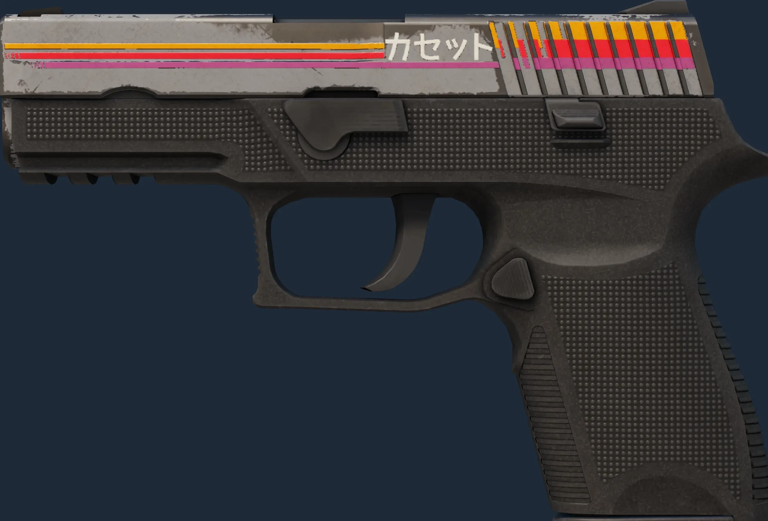 The P250 | Cassette is a Covert grade skin for the P250 in Counter-Strike 2. It features a Custom Paint Job finish and was designed by Mishovy.