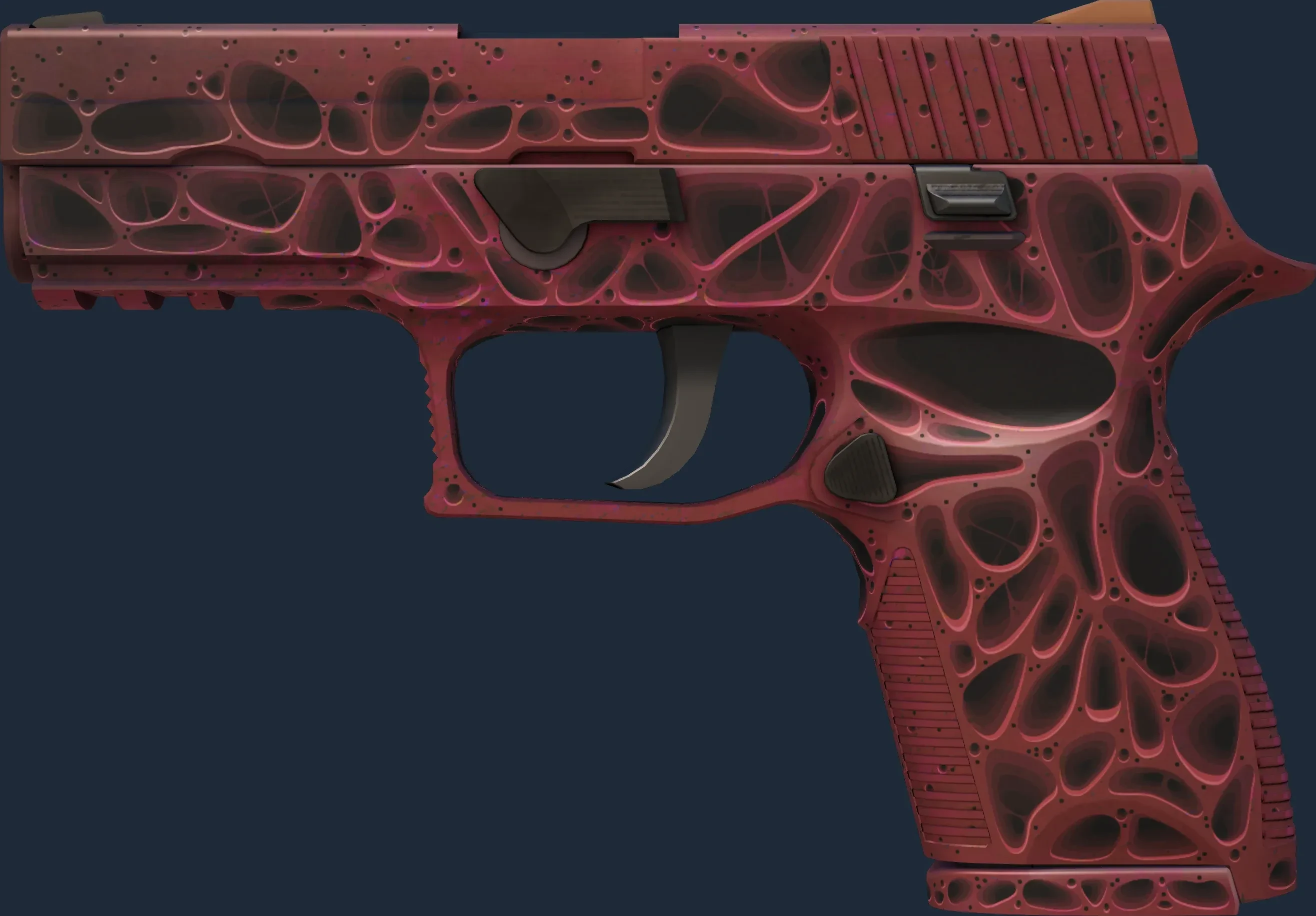 The P250 | Contaminant is a Covert grade skin for the P250 in Counter-Strike 2. It features a Custom Paint Job finish and was designed by kiku.