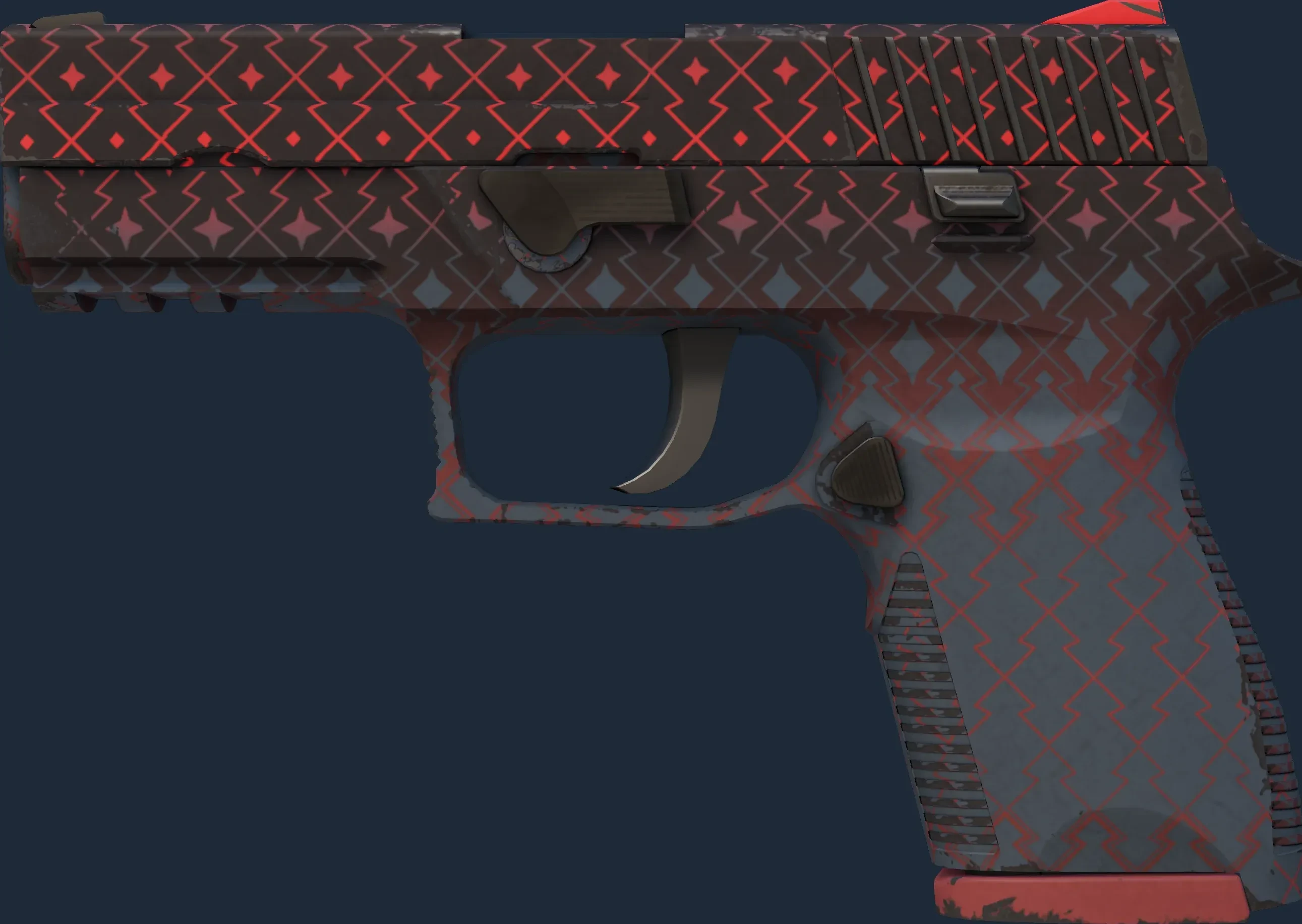 The P250 | Crimson Kimono is a Covert grade skin for the P250 in Counter-Strike 2. It features a Custom Paint Job finish and was designed by Valve.