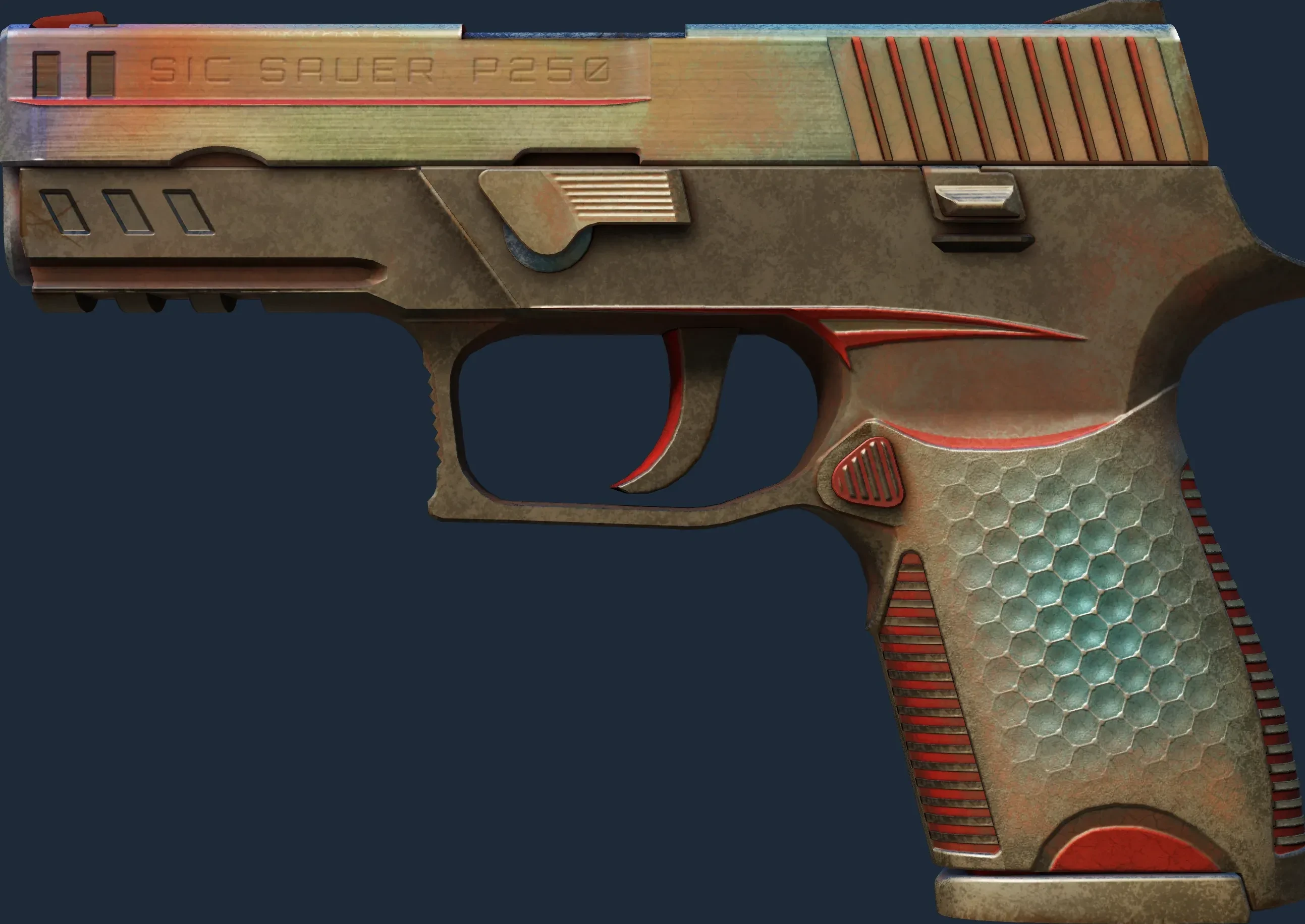 The P250 | Cyber Shell is a Covert grade skin for the P250 in Counter-Strike 2. It features a Custom Paint Job finish and was designed by Desty.