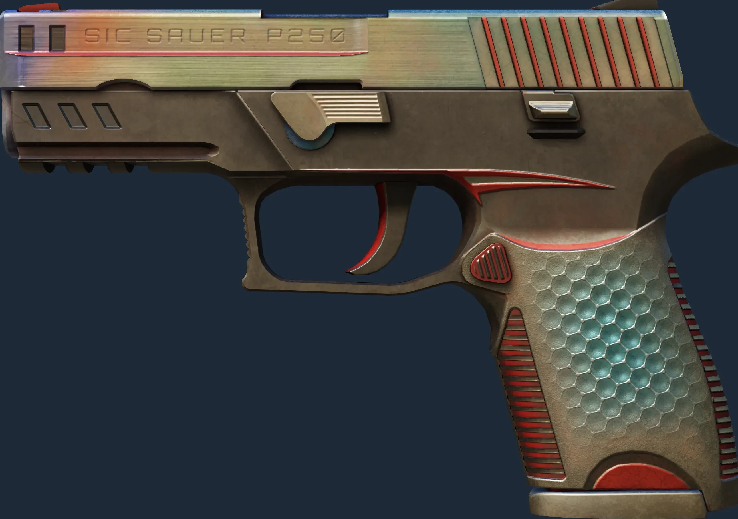The P250 | Cyber Shell is a Covert grade skin for the P250 in Counter-Strike 2. It features a Custom Paint Job finish and was designed by Desty.