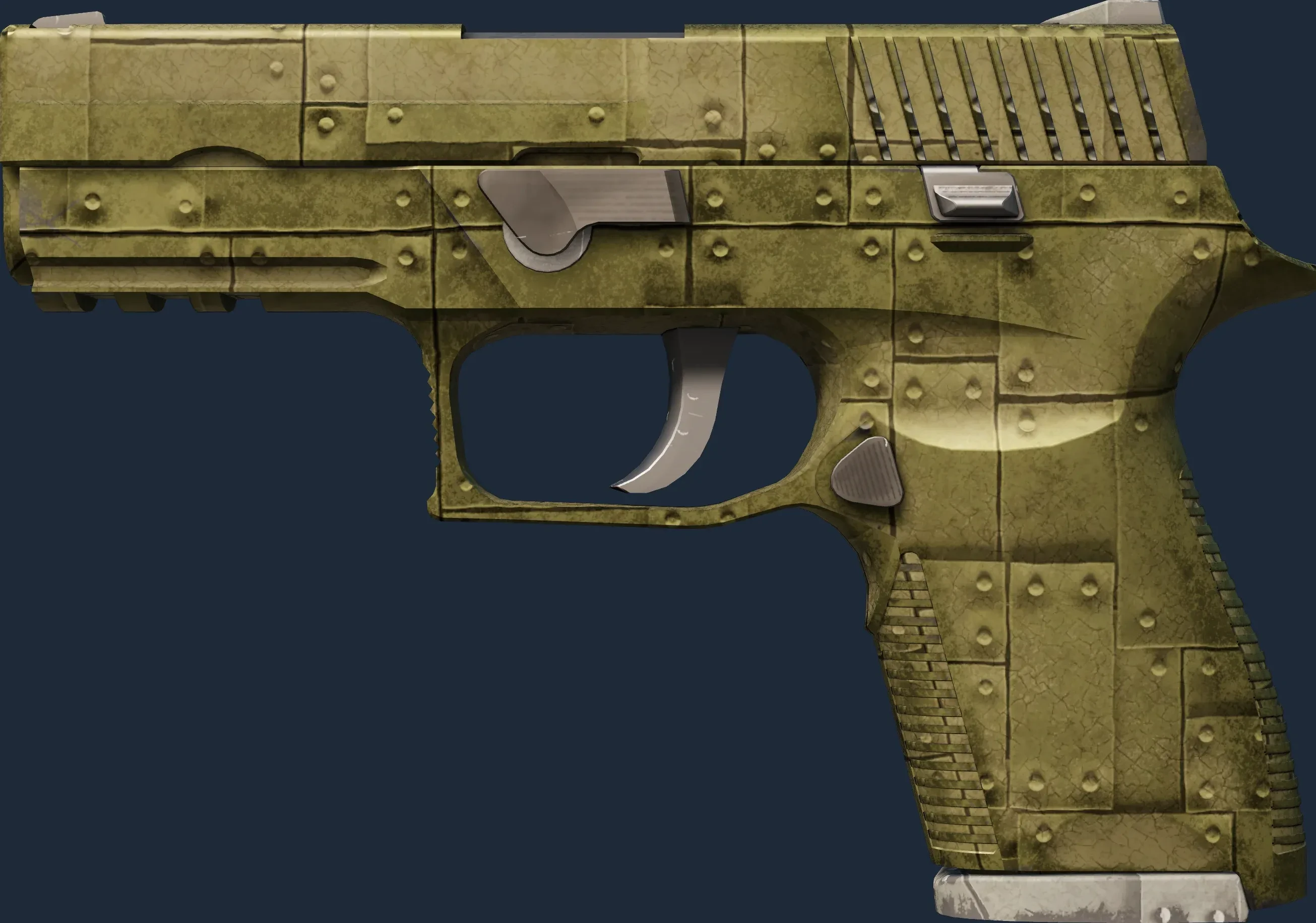 The P250 | Iron Clad is a Covert grade skin for the P250 in Counter-Strike 2. It features a Custom Paint Job finish and was designed by G-99Factory.