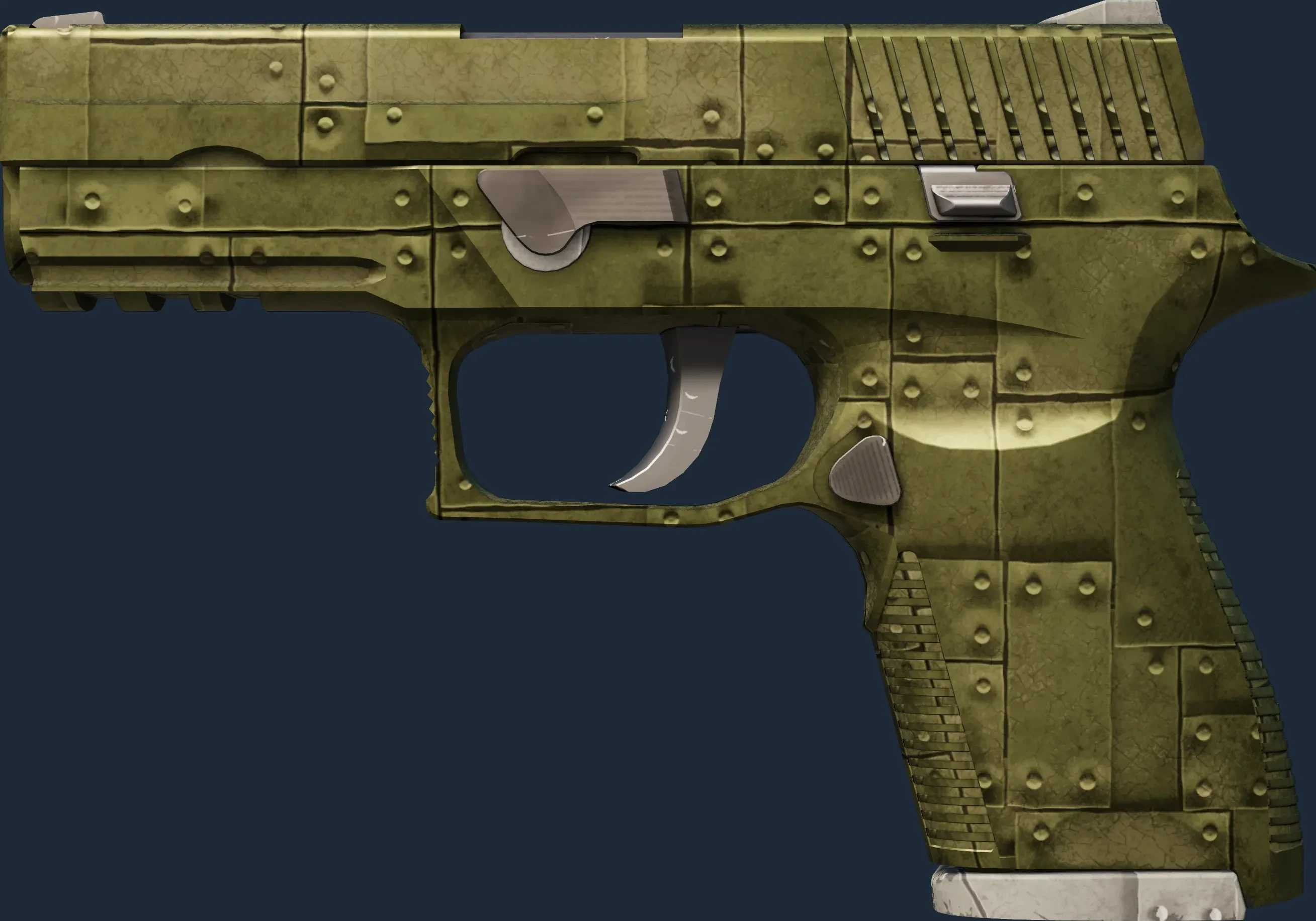 The P250 | Iron Clad is a Covert grade skin for the P250 in Counter-Strike 2. It features a Custom Paint Job finish and was designed by G-99Factory.