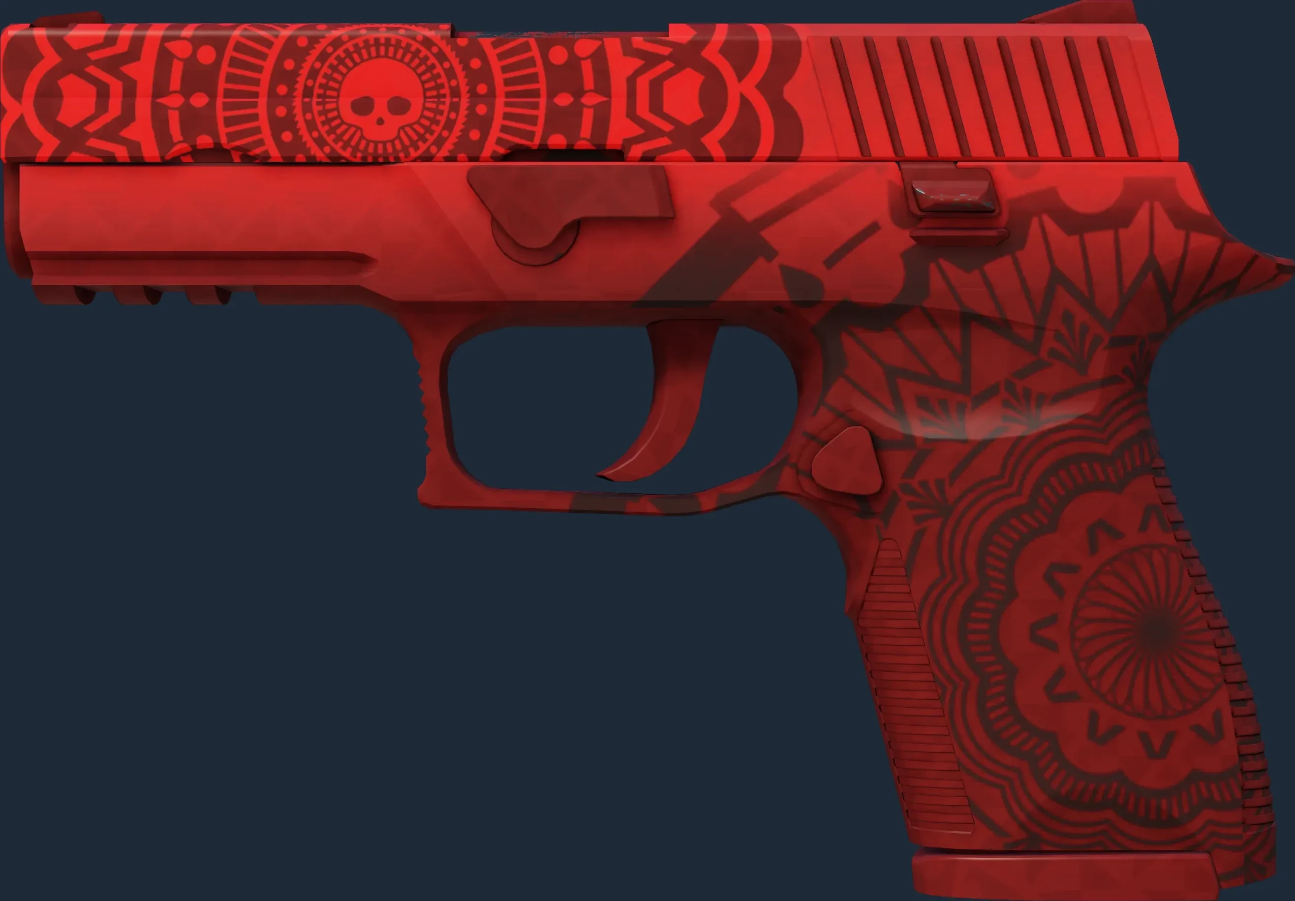 The P250 | Muertos is a Covert grade skin for the P250 in Counter-Strike 2. It features a Custom Paint Job finish and was designed by Marioso.
