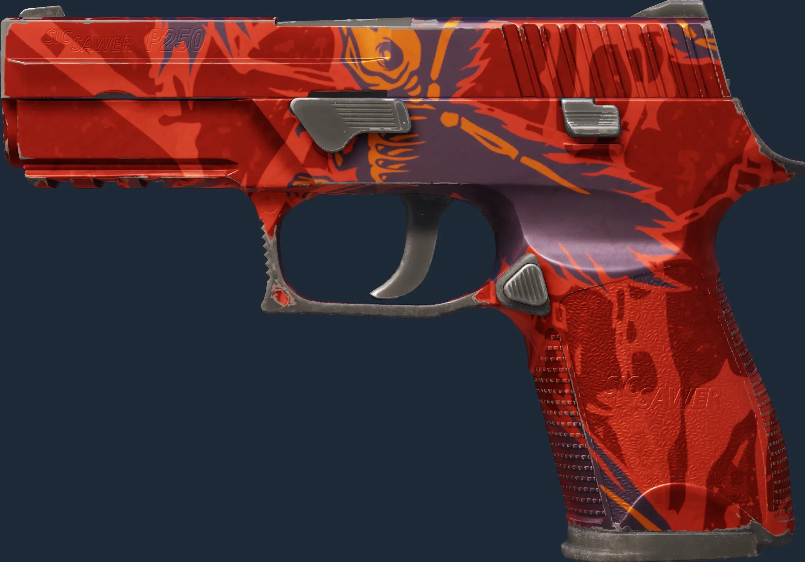 The P250 | Nevermore is a Covert grade skin for the P250 in Counter-Strike 2. It features a Custom Paint Job finish and was designed by m\_d.