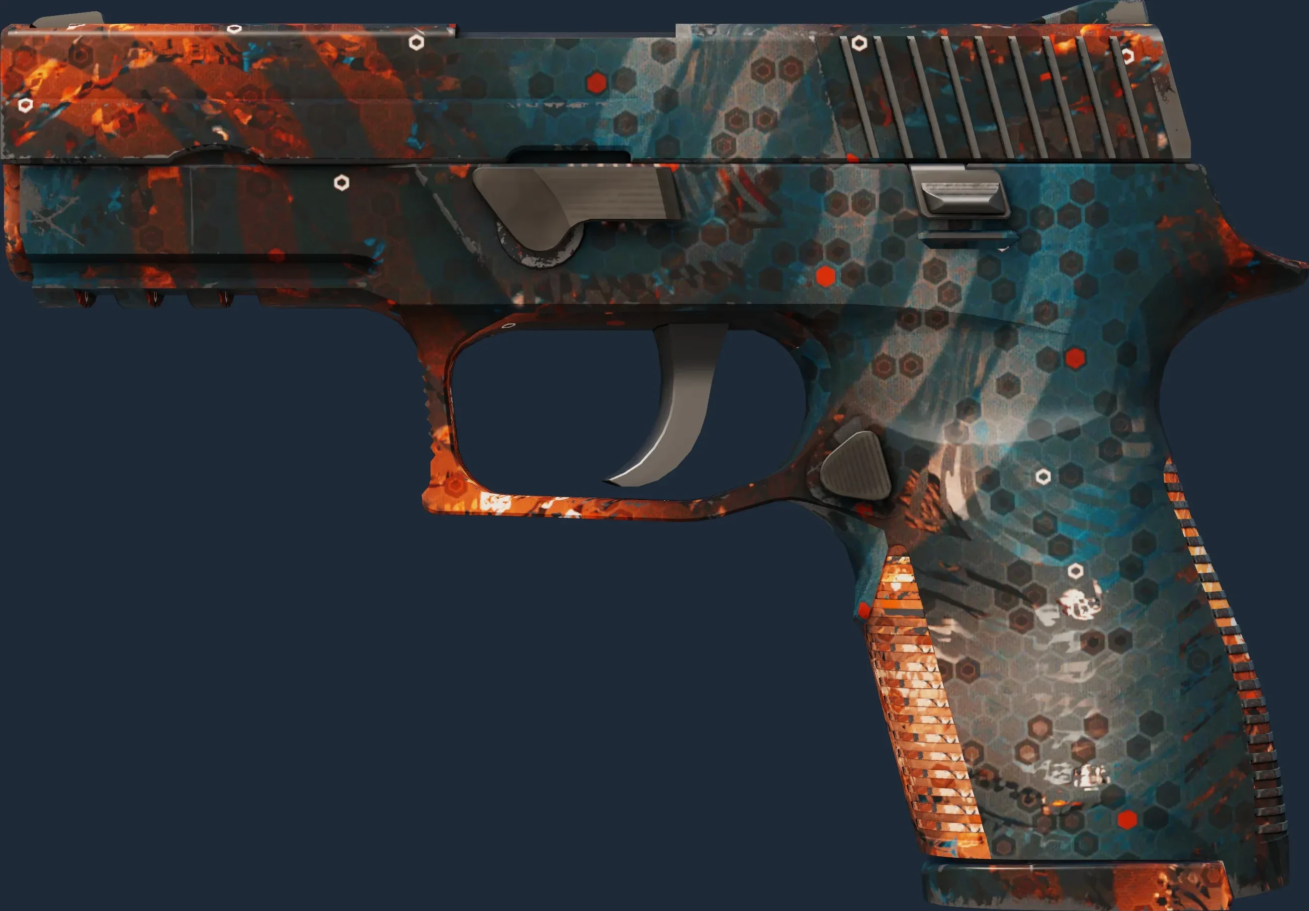The P250 | Supernova is a Covert grade skin for the P250 in Counter-Strike 2. It features a Custom Paint Job finish and was designed by Algis.