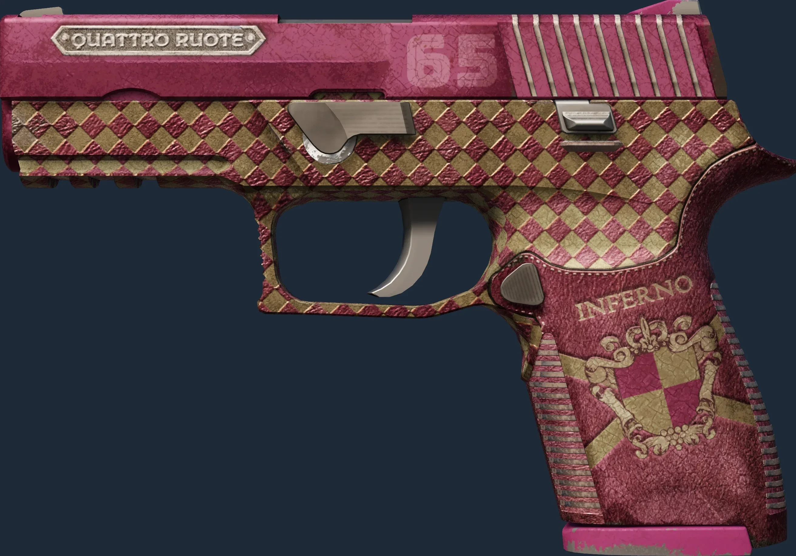 The P250 | Vino Primo is a Covert grade skin for the P250 in Counter-Strike 2. It features a Custom Paint Job finish and was designed by Valve.