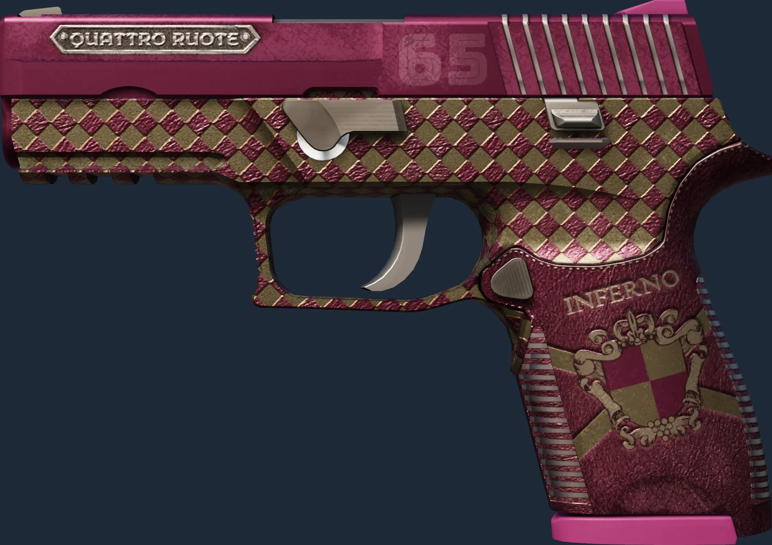 The P250 | Vino Primo is a Covert grade skin for the P250 in Counter-Strike 2. It features a Custom Paint Job finish and was designed by Valve.