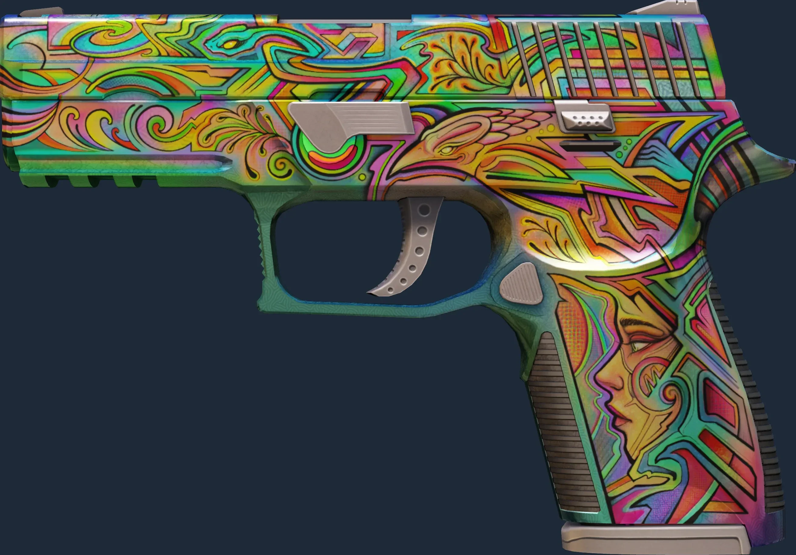 The P250 | Visions is a Covert grade skin for the P250 in Counter-Strike 2. It features a Custom Paint Job finish and was designed by cimota.