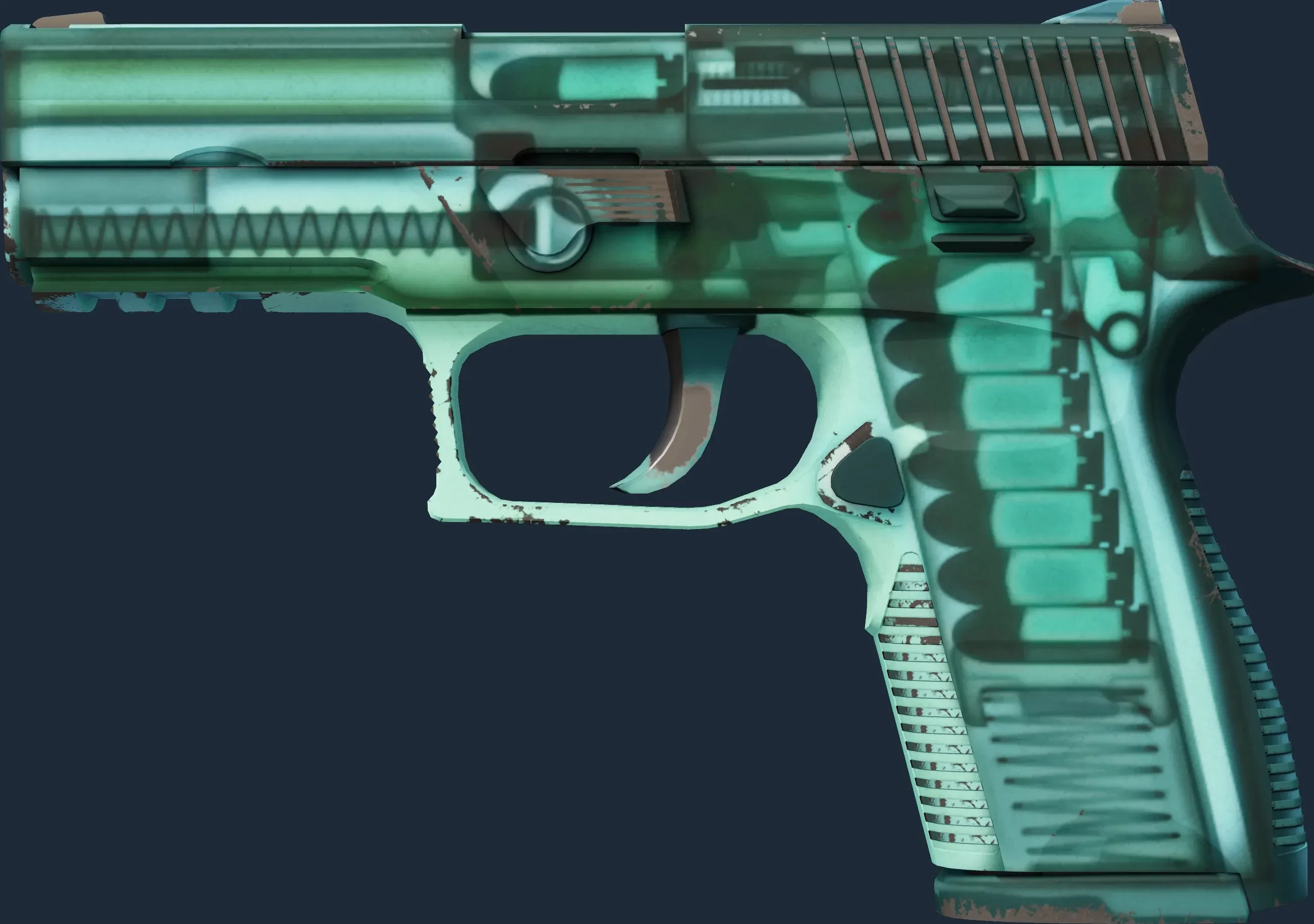 The P250 | X Ray is a Covert grade skin for the P250 in Counter-Strike 2. It features a Custom Paint Job finish and was designed by Valve.
