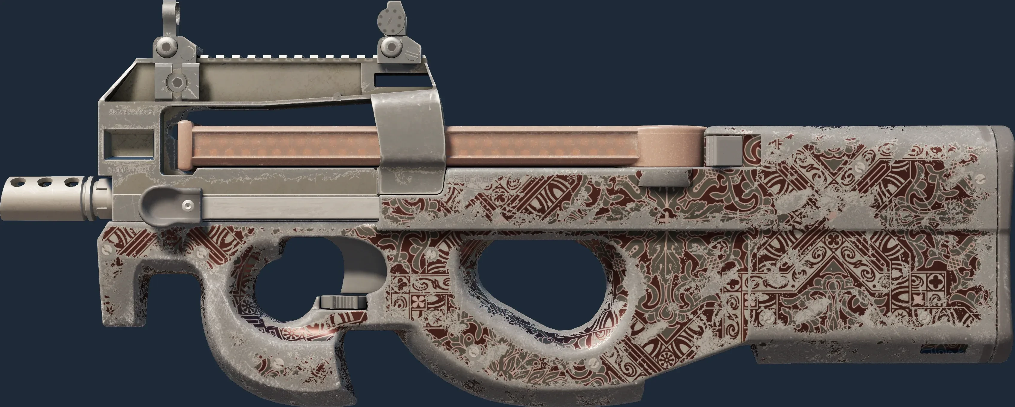 The P90 | Baroque Red is a Covert grade skin for the P90 in Counter-Strike 2. It features a Custom Paint Job finish and was designed by Valve.