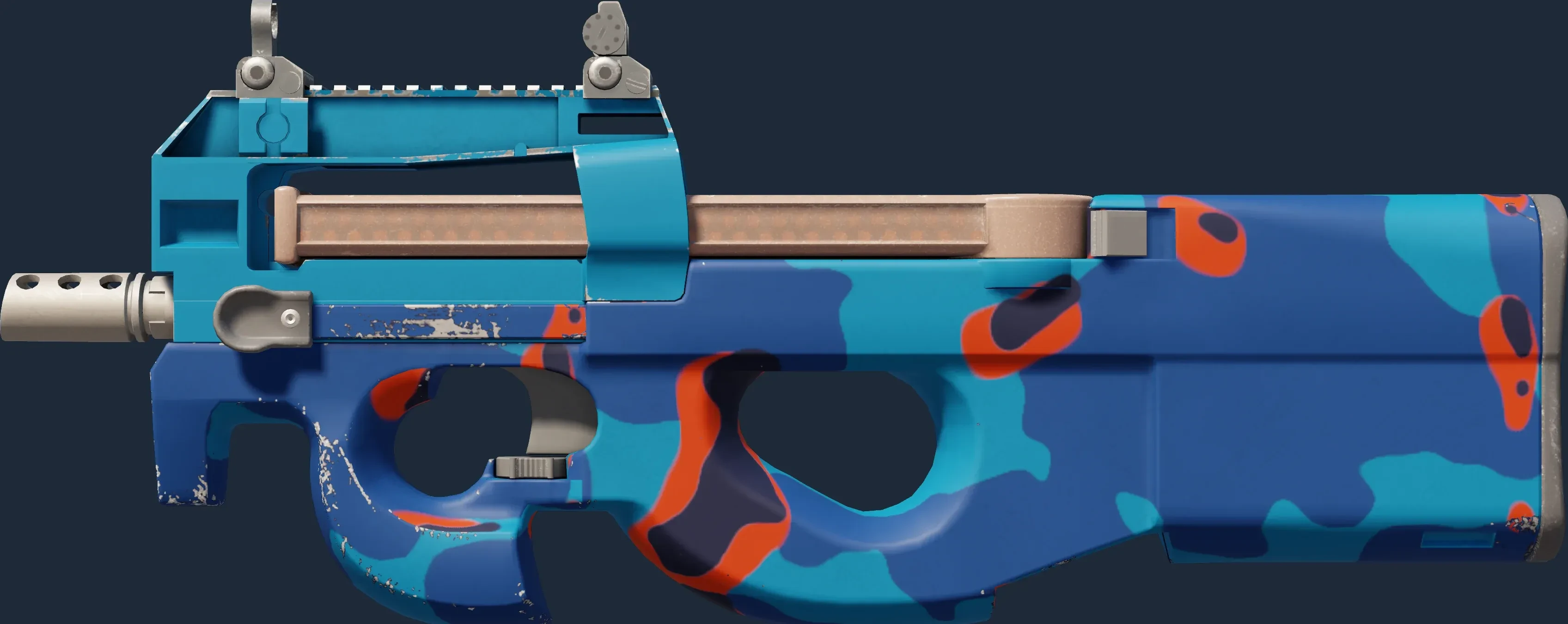 The P90 | Blind Spot is a Covert grade skin for the P90 in Counter-Strike 2. It features a Custom Paint Job finish and was designed by Valve.