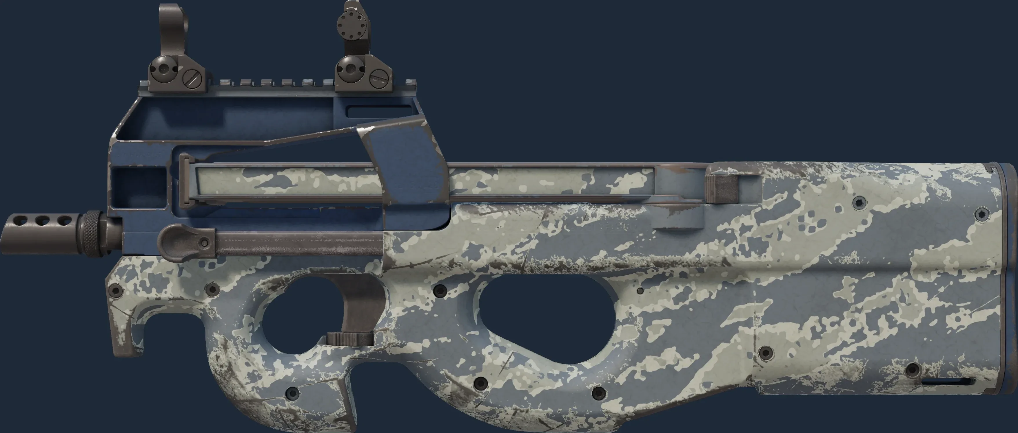 The P90 | Blue Tac is a Covert grade skin for the P90 in Counter-Strike 2. It features a Custom Paint Job finish and was designed by Valve.