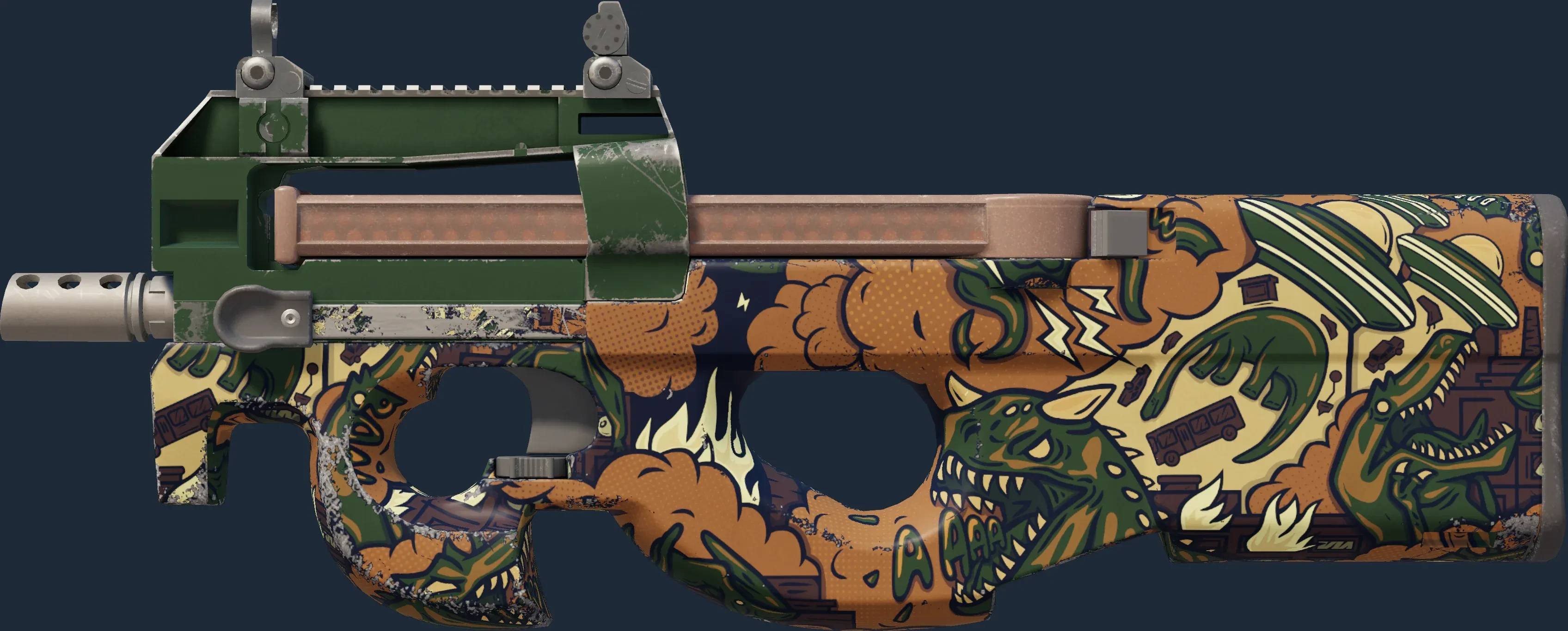 The P90 | Cocoa Rampage is a Covert grade skin for the P90 in Counter-Strike 2. It features a Custom Paint Job finish and was designed by krM5.