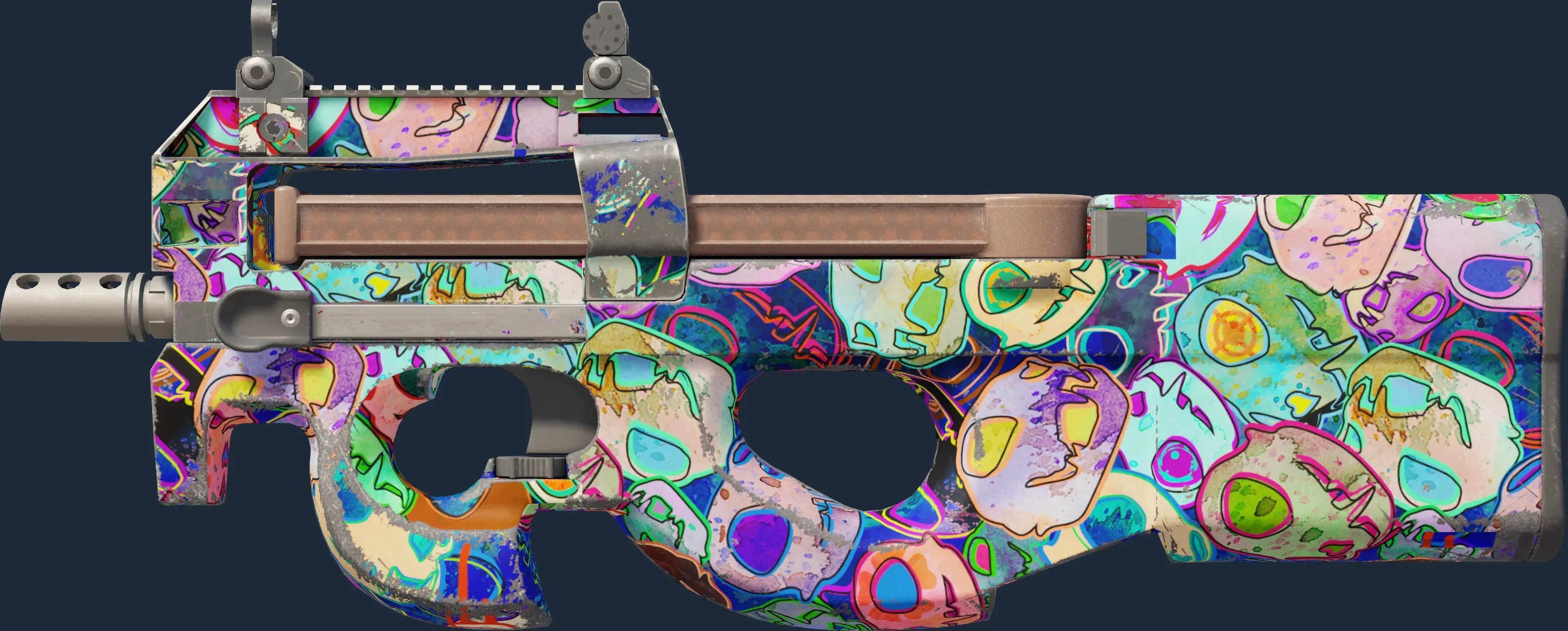 The P90 | Death By Kitty is a Covert grade skin for the P90 in Counter-Strike 2. It features a Custom Paint Job finish and was designed by Valve.