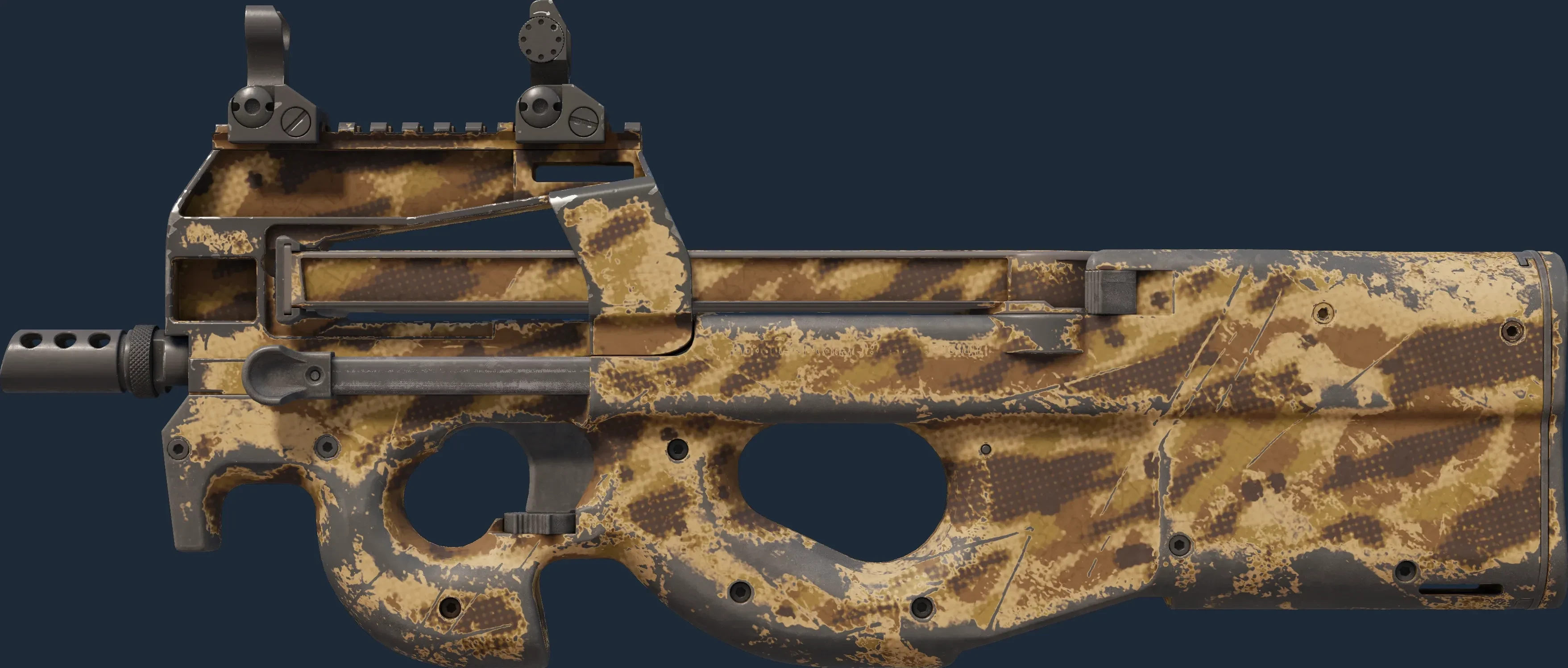 The P90 | Desert Halftone is a Covert grade skin for the P90 in Counter-Strike 2. It features a Custom Paint Job finish and was designed by Valve.