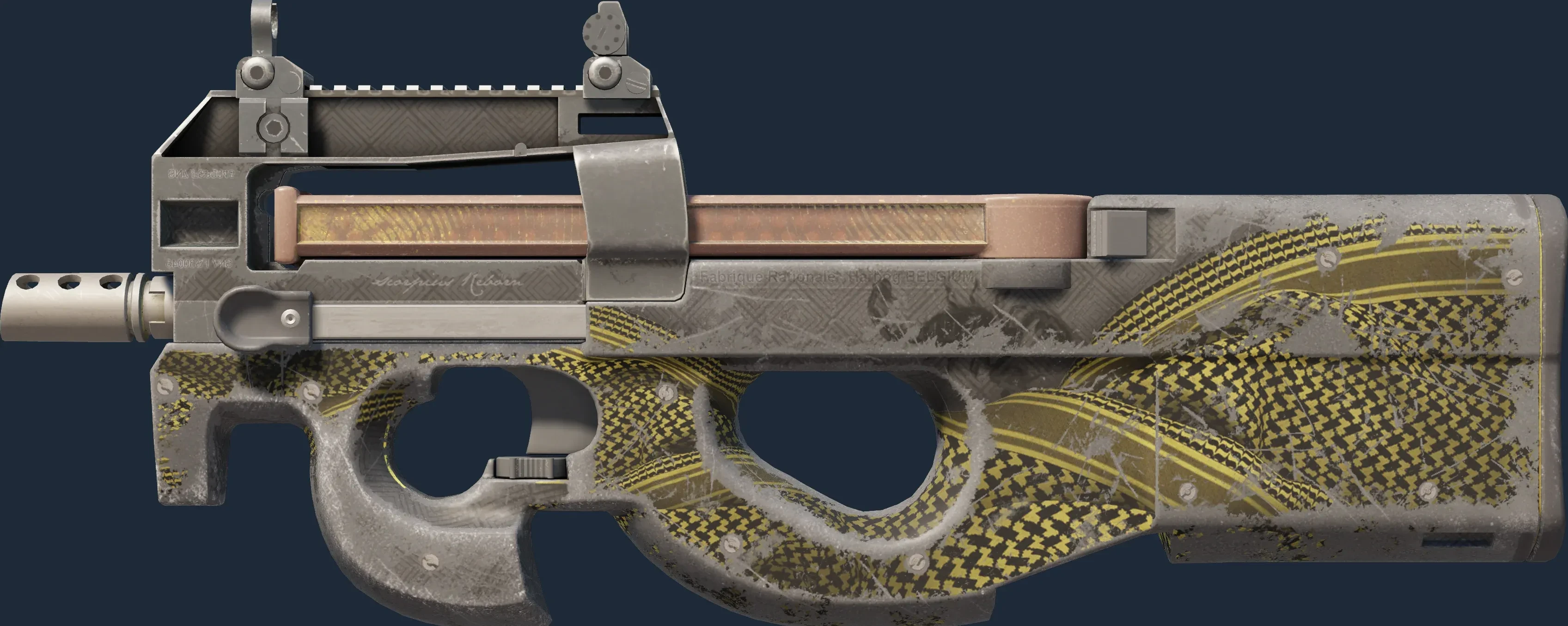The P90 | Desert Warfare is a Covert grade skin for the P90 in Counter-Strike 2. It features a Custom Paint Job finish and was designed by sic.