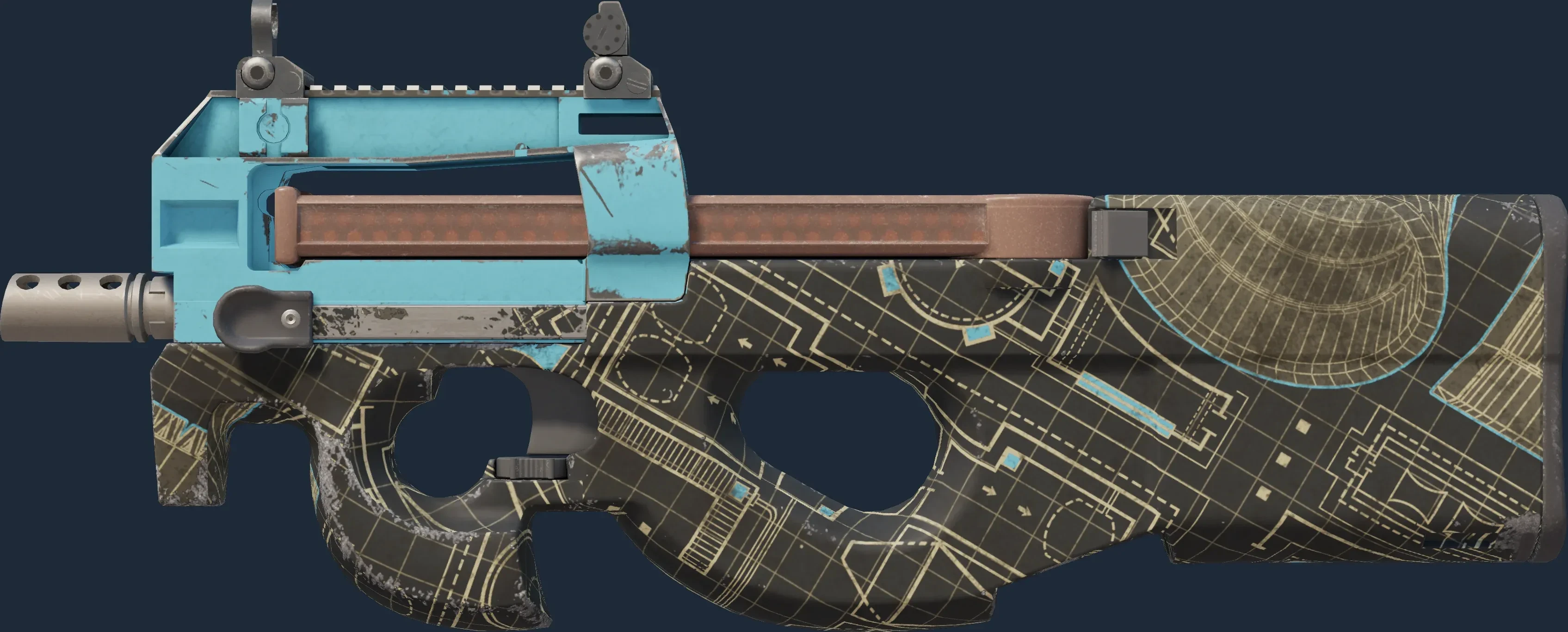 The P90 | Facility Negative is a Covert grade skin for the P90 in Counter-Strike 2. It features a Custom Paint Job finish and was designed by Valve.