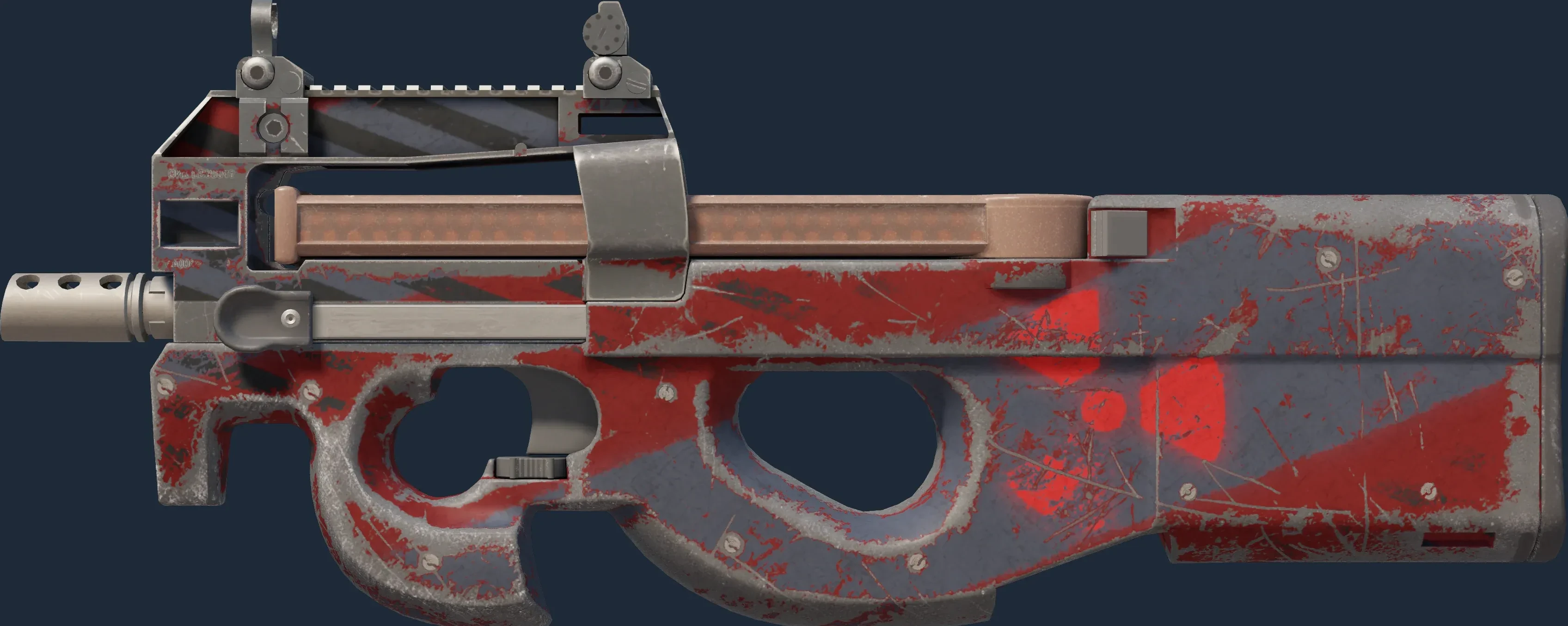 The P90 | Fallout Warning is a Covert grade skin for the P90 in Counter-Strike 2. It features a Custom Paint Job finish and was designed by Valve.