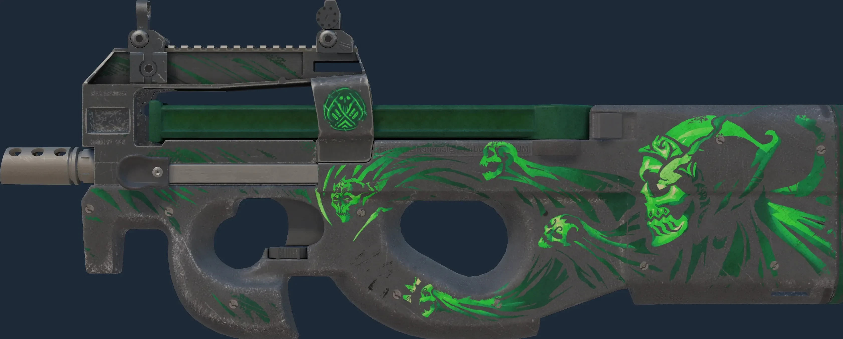 The P90 | Grim is a Covert grade skin for the P90 in Counter-Strike 2. It features a Custom Paint Job finish and was designed by Gooba.